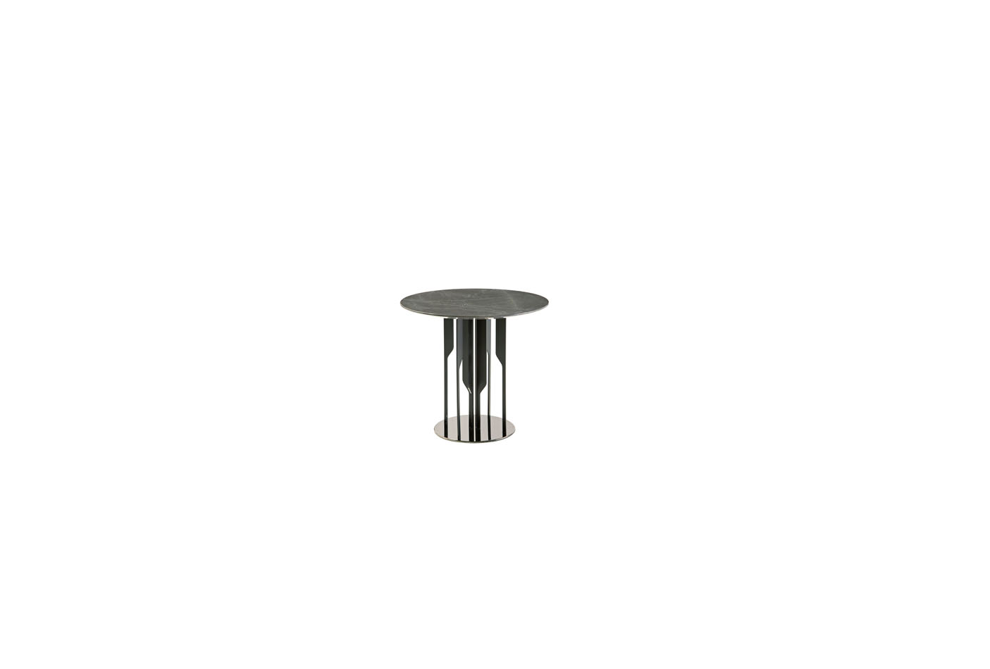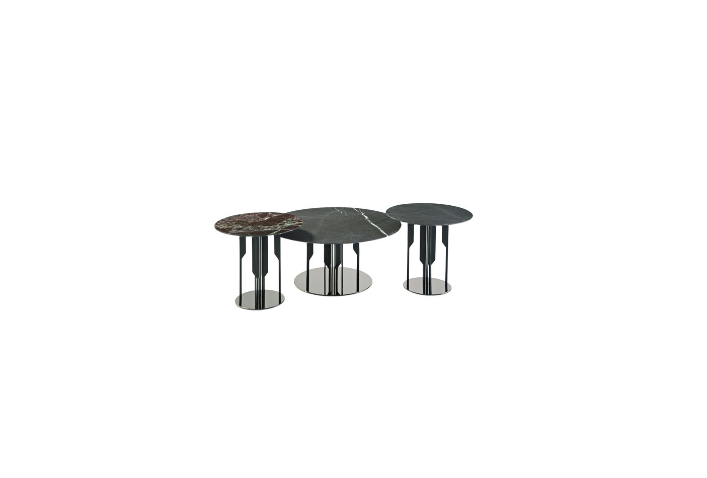 描述:茶几上面有光滑的大理石,哑光漆腿,黑色和镀铬的底座。