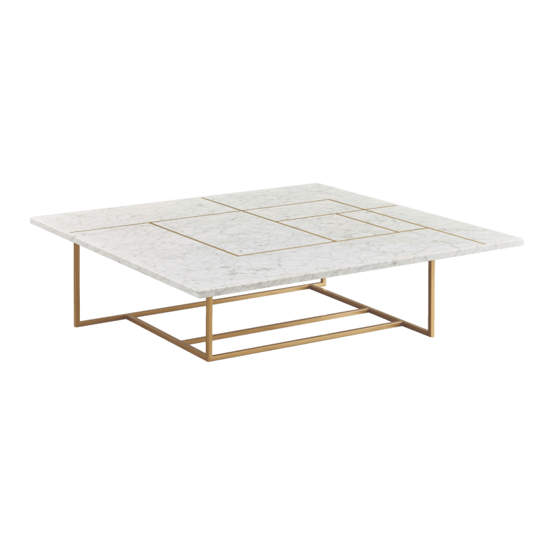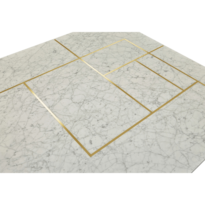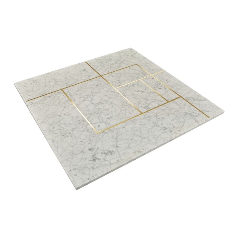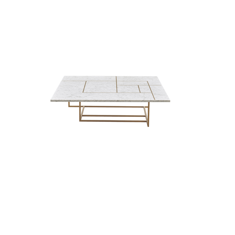 描述:正方形桌子,20mm厚的白色大理石台面,茶几支撑腿为精加工黄铜。