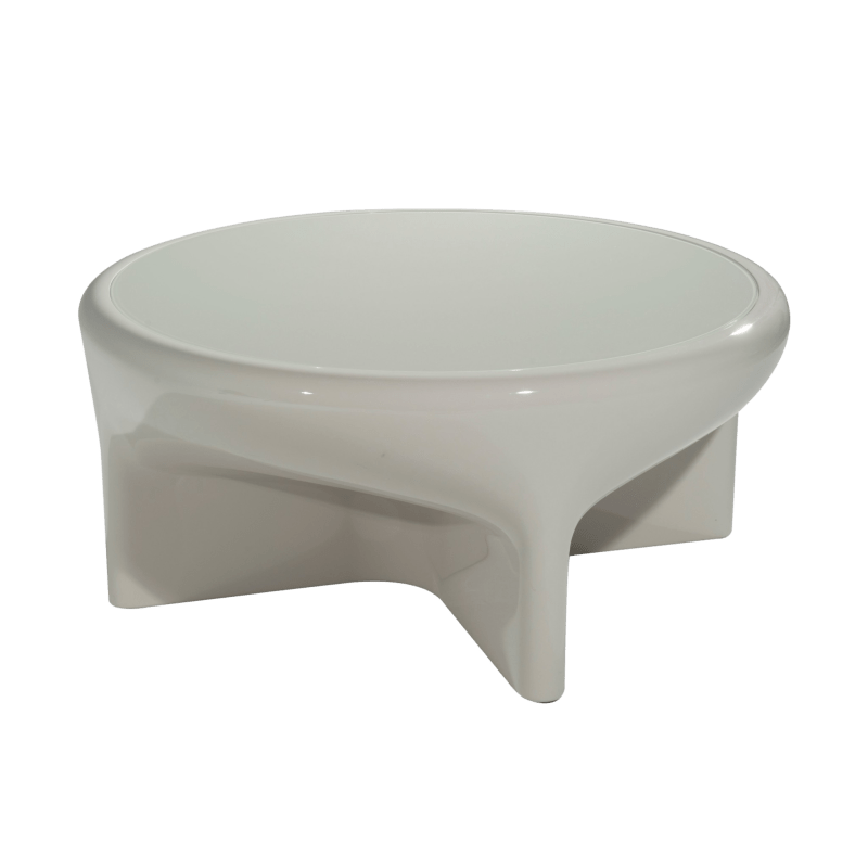 描述:这款茶几的设计特点形状从一个十字形的底部逐渐过渡到一个圆柱形的顶部,看起来像火箭的尾部,材质为树脂。