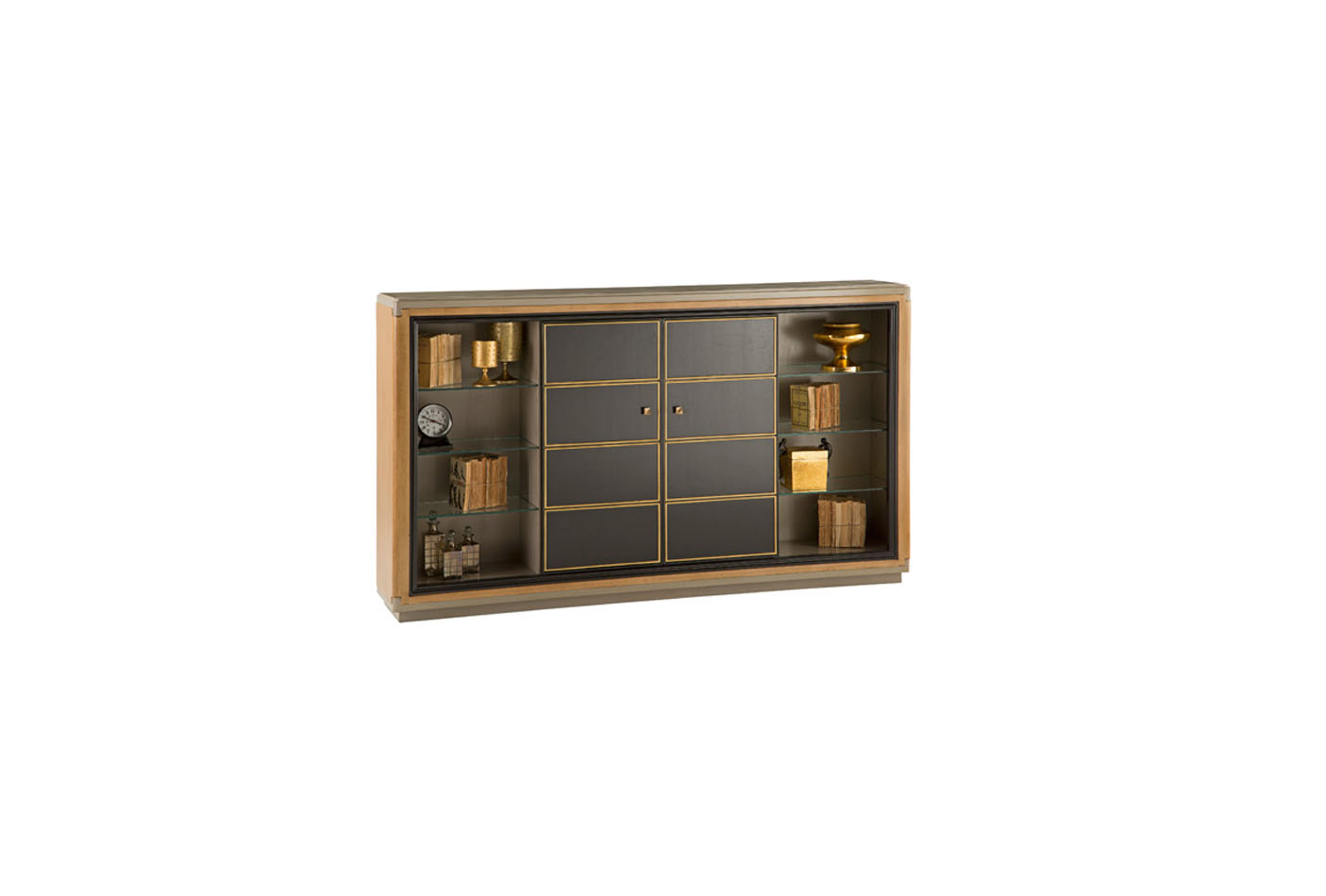 描述:樱桃实木框架,榉木嵌板,2滑门,两侧6玻璃隔板,多种漆面着色可供选择。