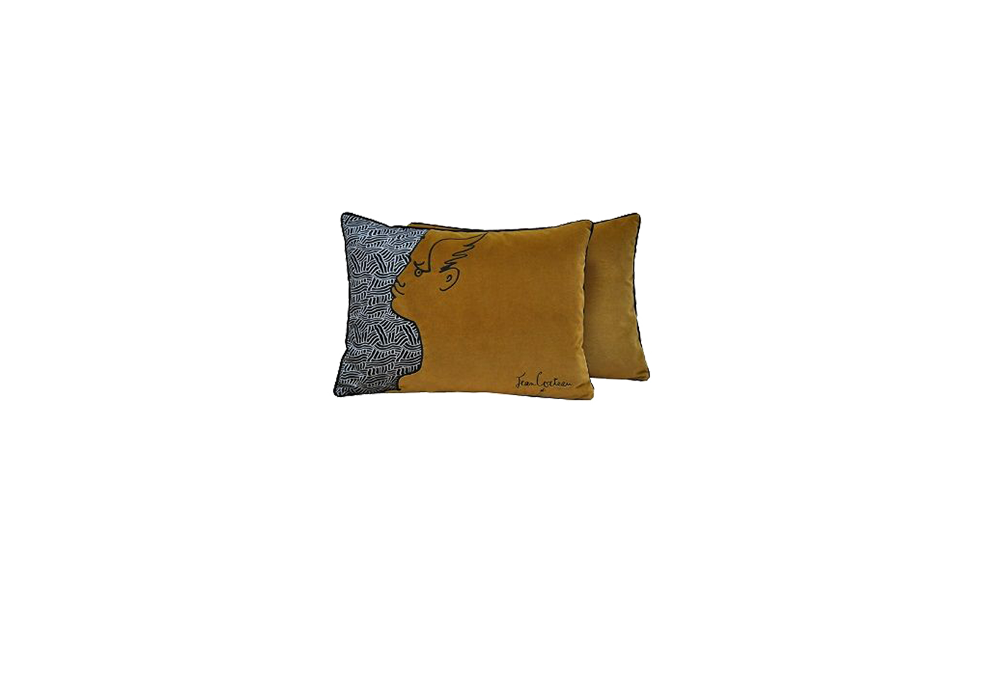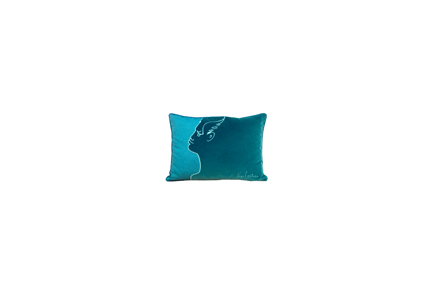 描述:天鹅绒上缝制有Jean Cocteau的艺术作品“PROFIL AILE”。多种颜色供选。