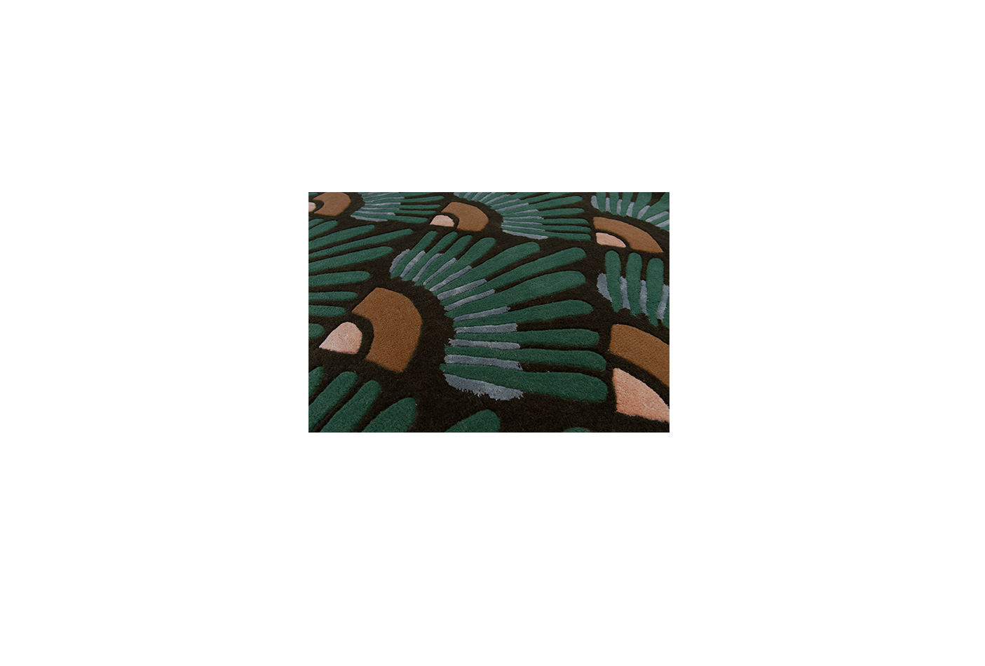 描述:新西兰羊毛和粘胶制成的手织地毯。