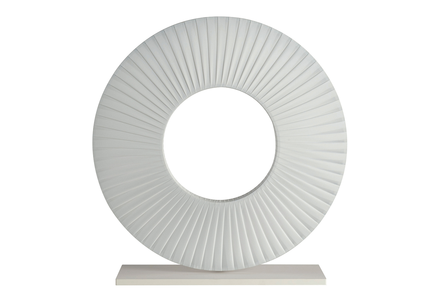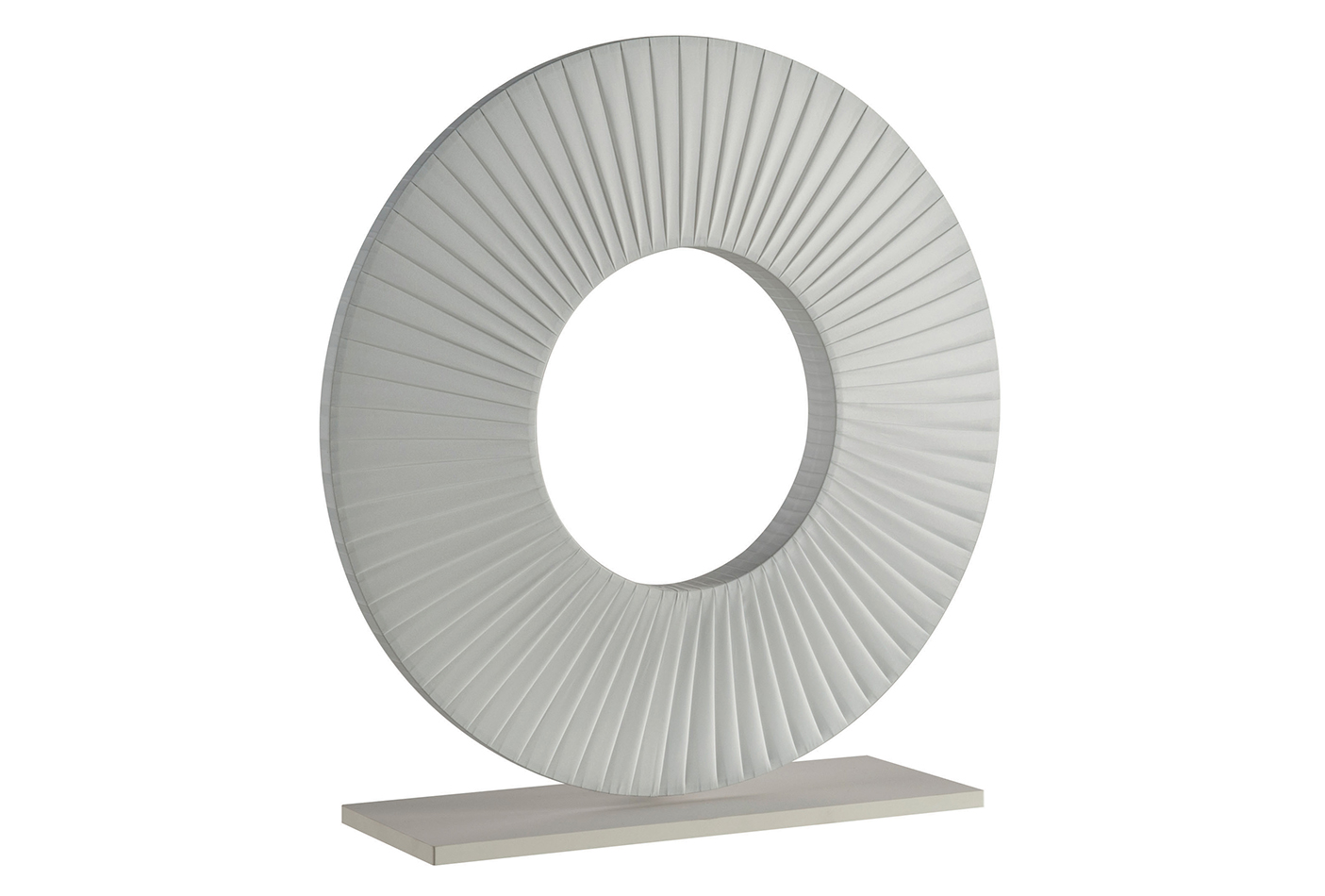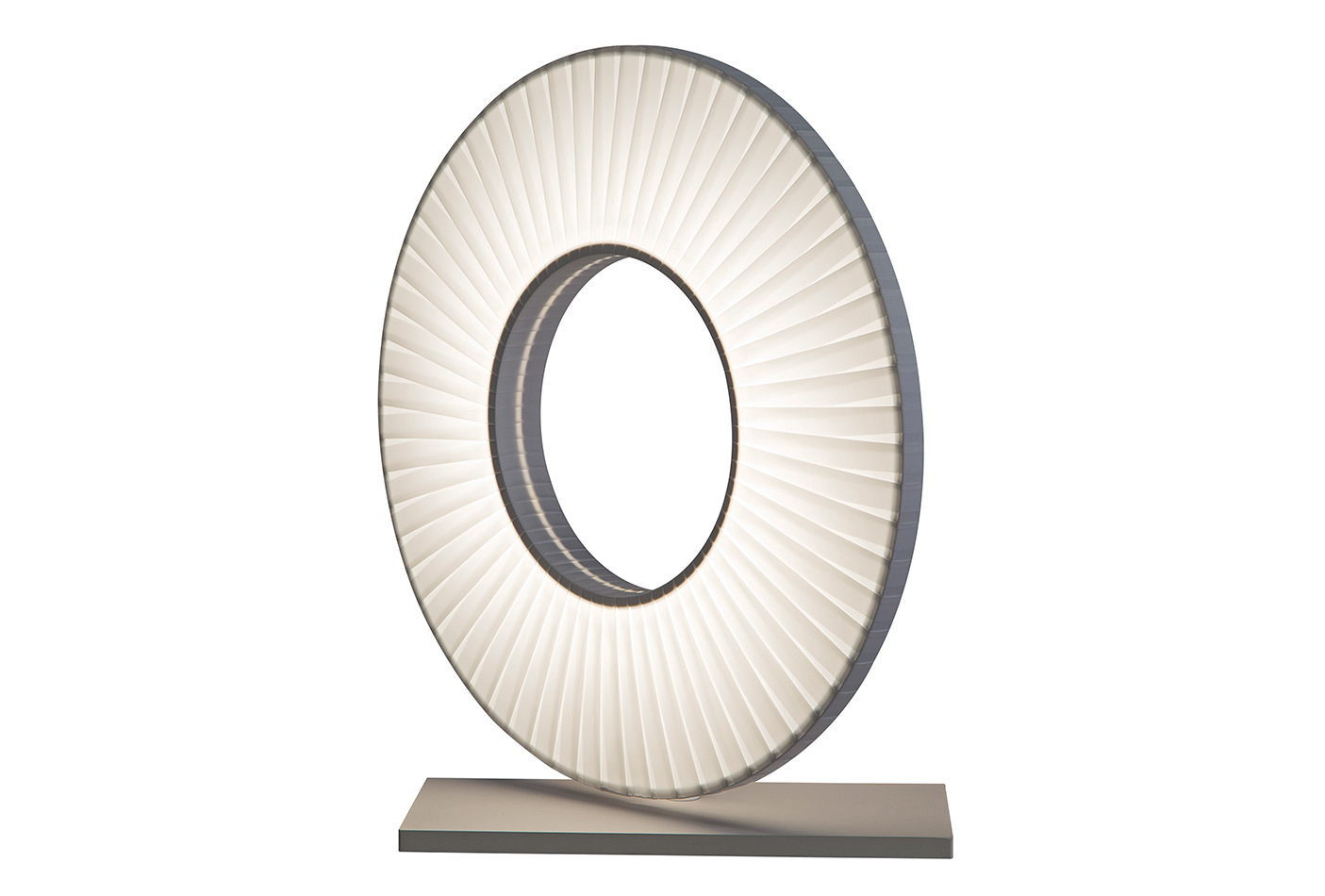 描述:这款台灯的底座为金属,灯罩为一个缠绕着白色丝带可旋转的圆环。