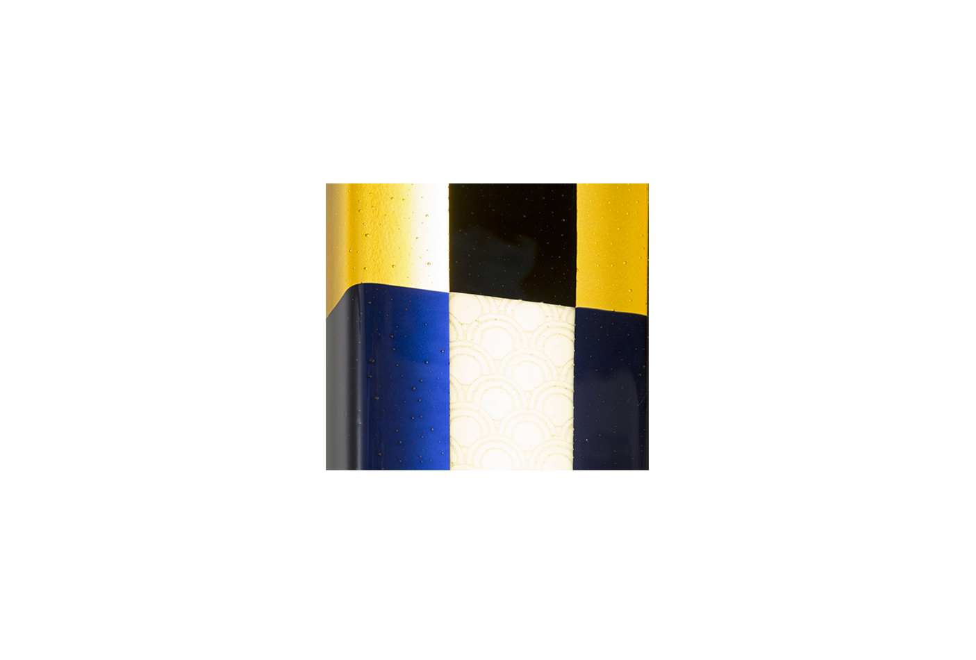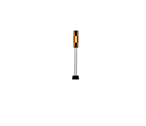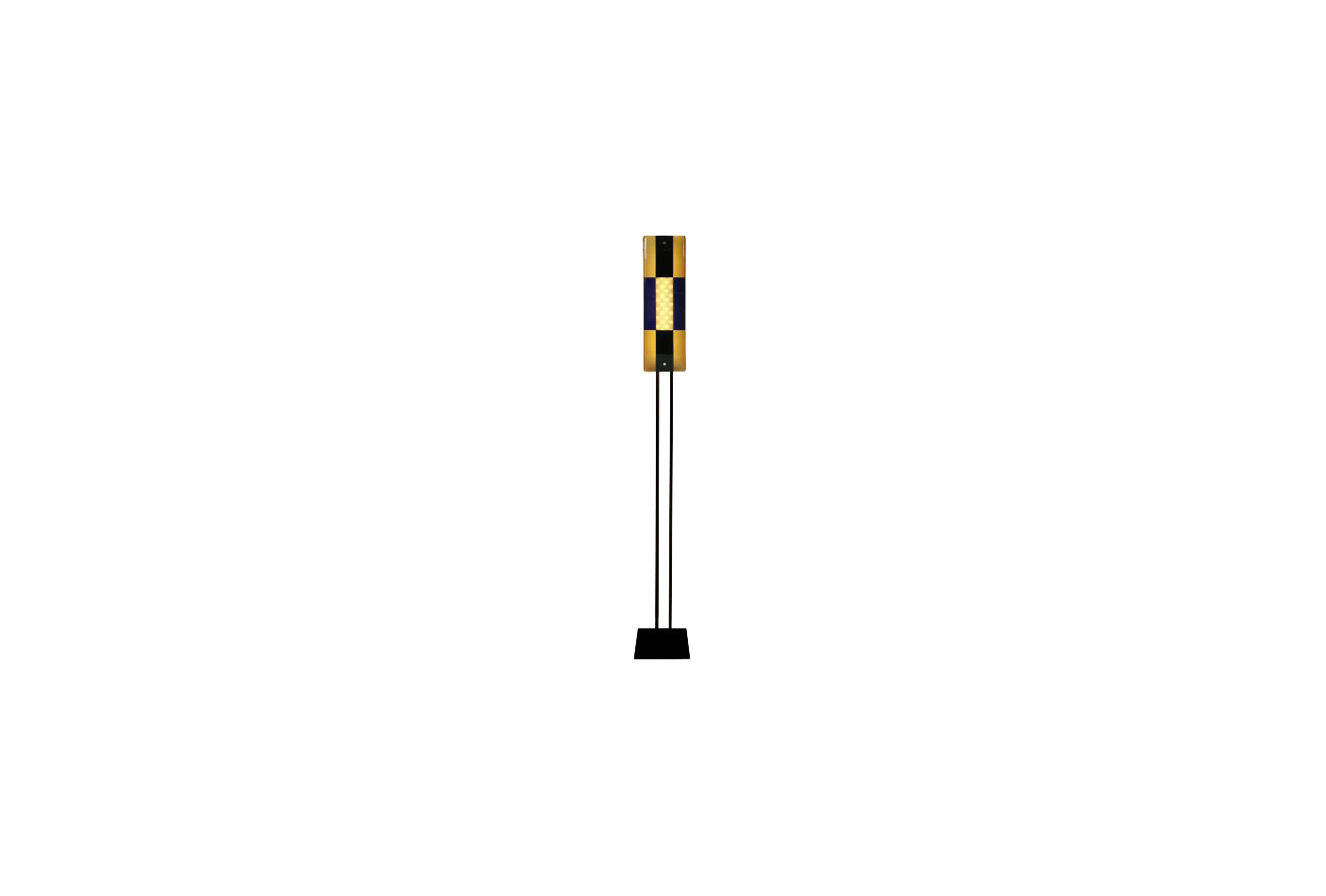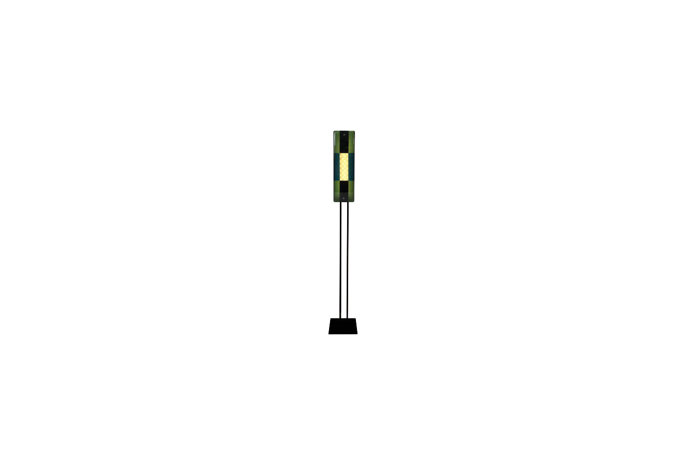 描述:黑色金属结构的落地灯,缎面装饰,玻璃和丙烯酸酯漫射器。