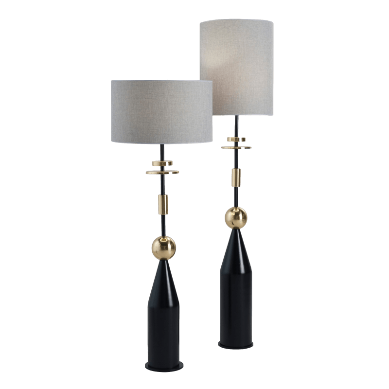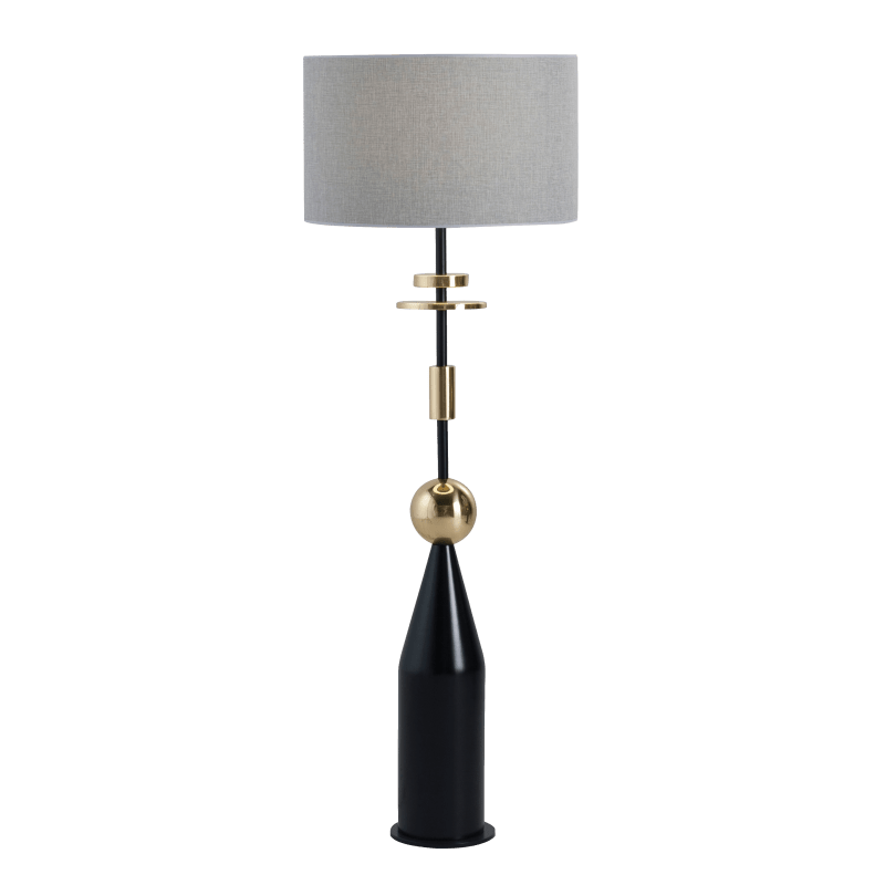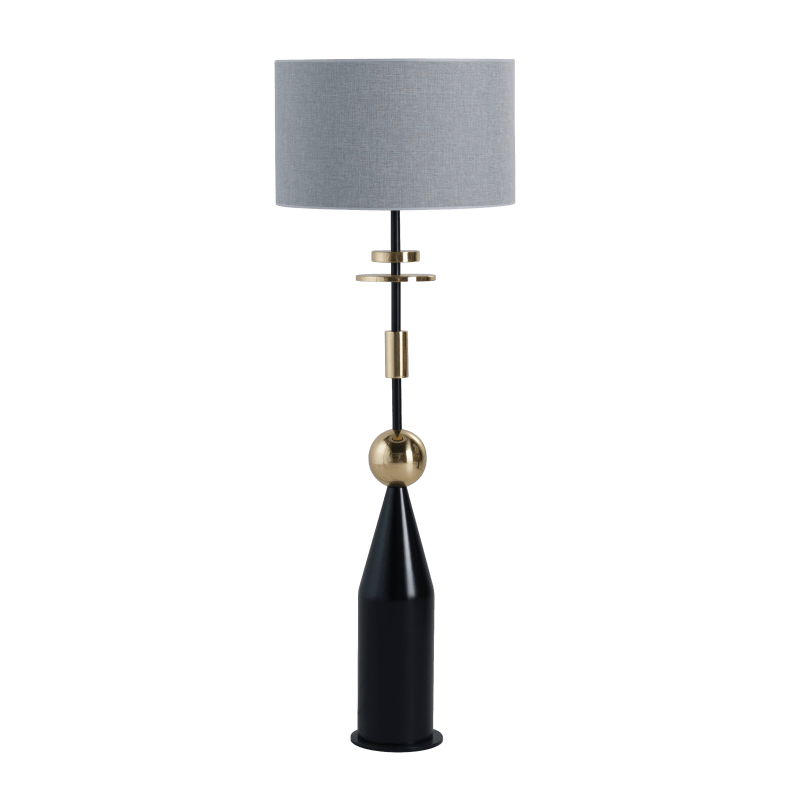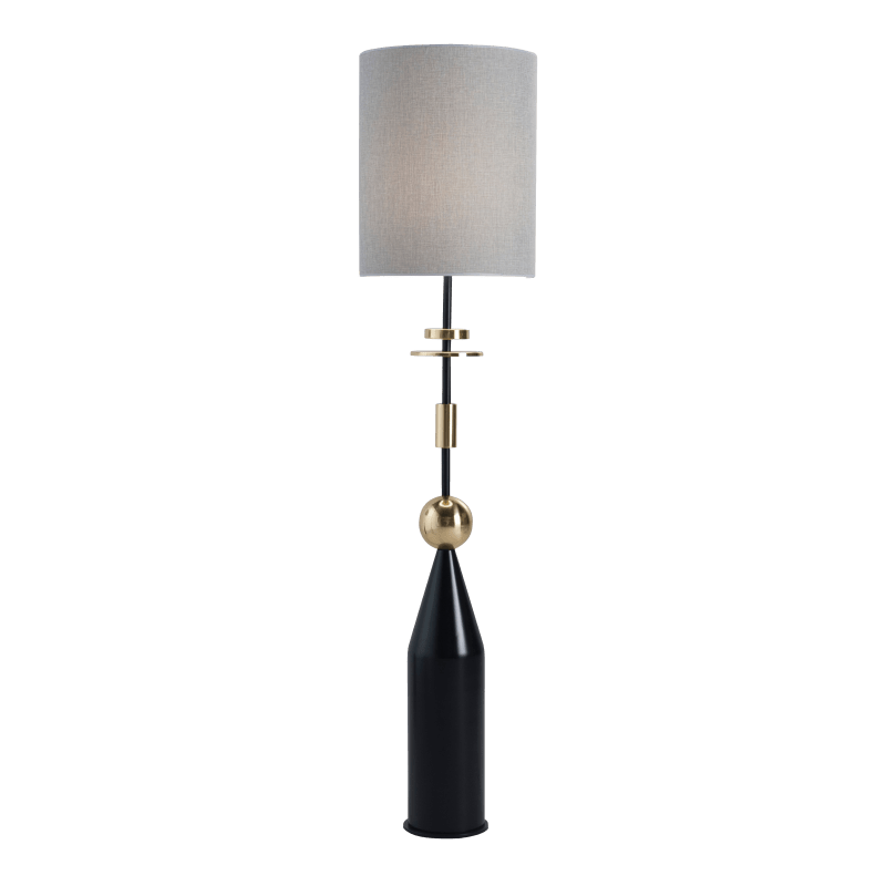 描述:落地灯杆为黑色环氧金属灯架,有黑色木材和黄铜元素。灯罩50x30厘米。