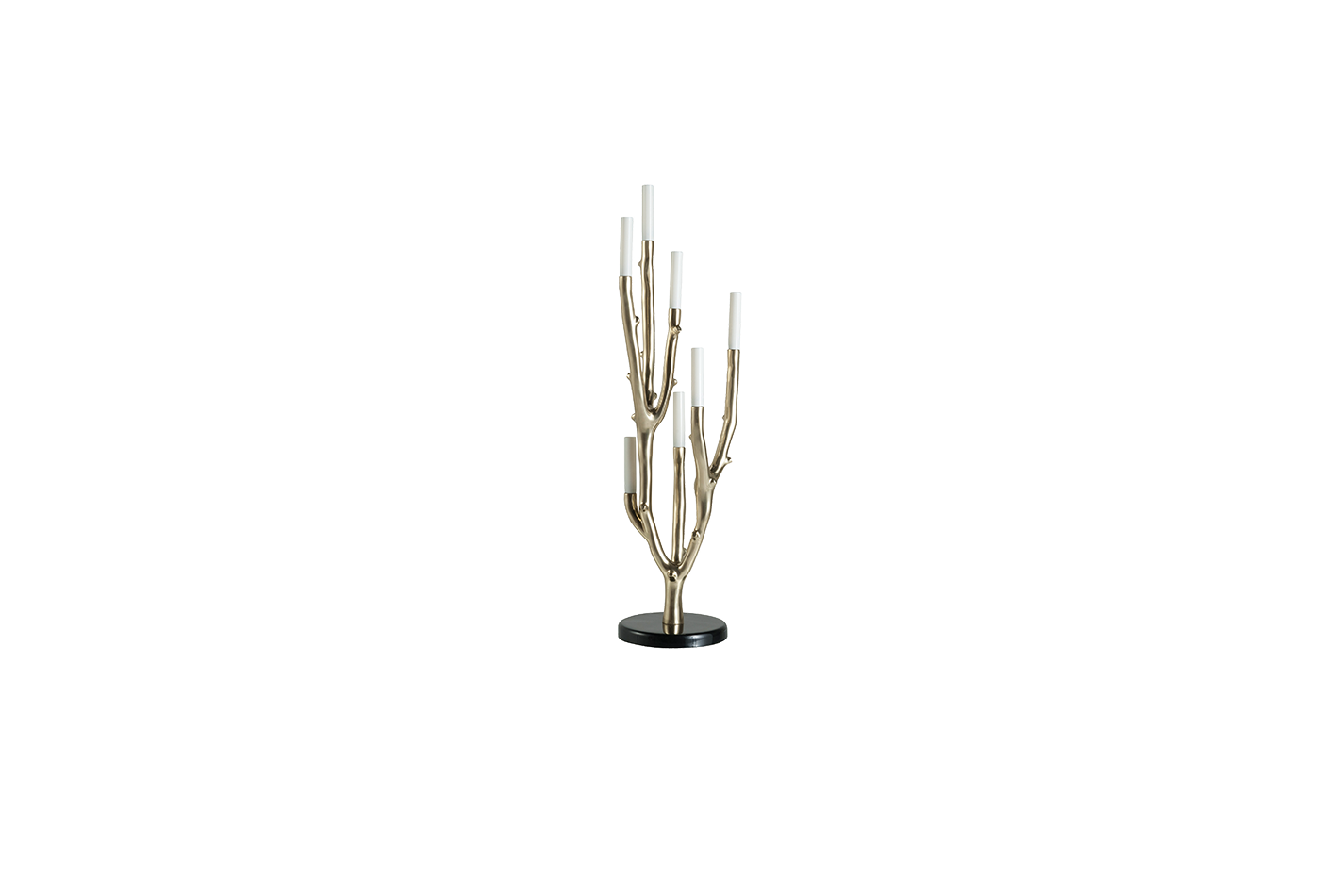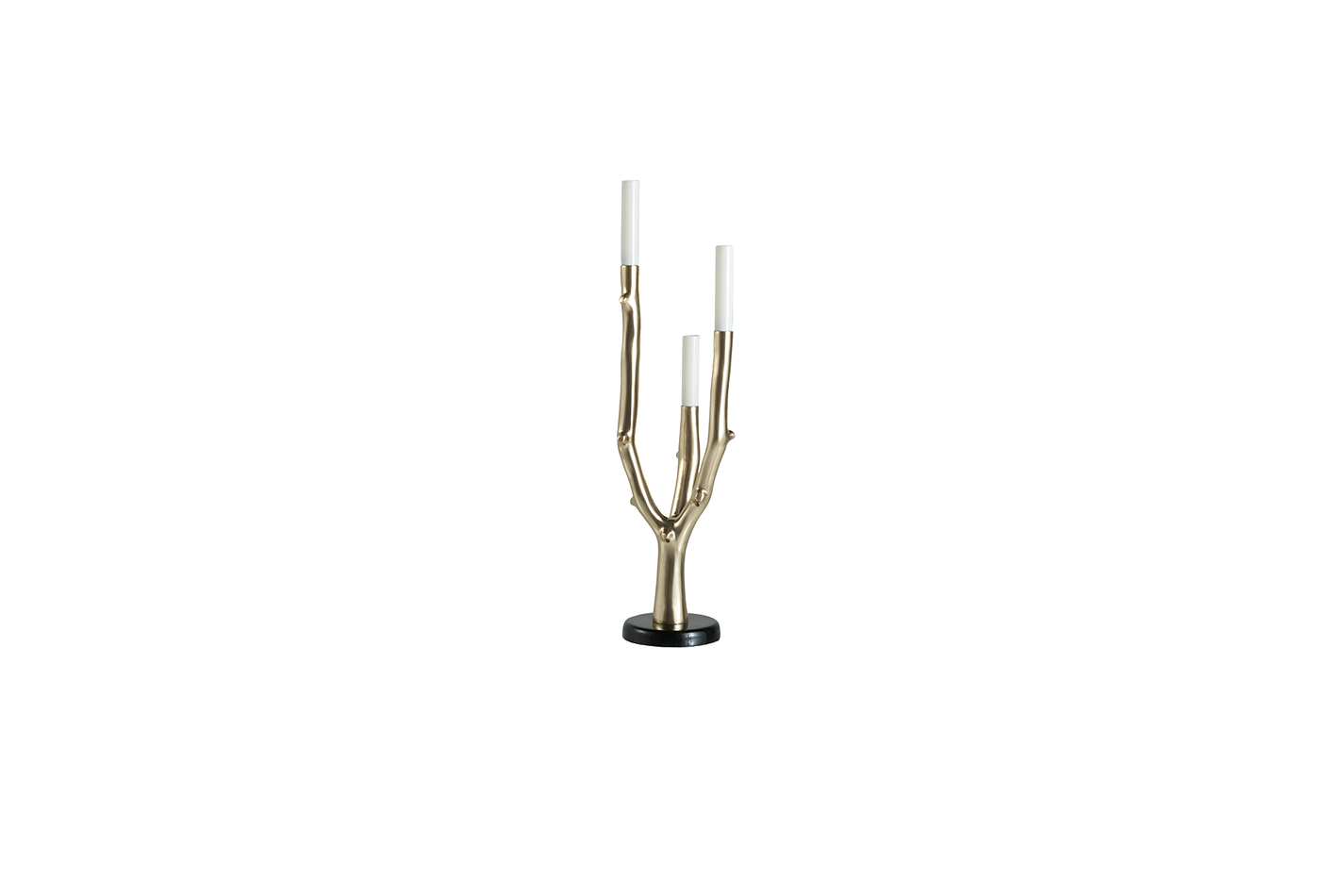 描述:落地灯采用铸铝结构、黄铜漆面和PMMA管。