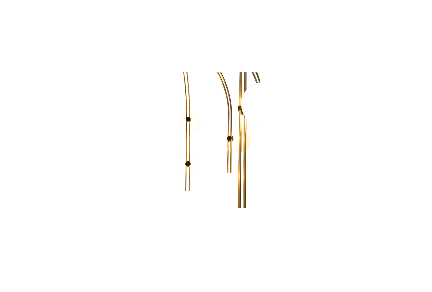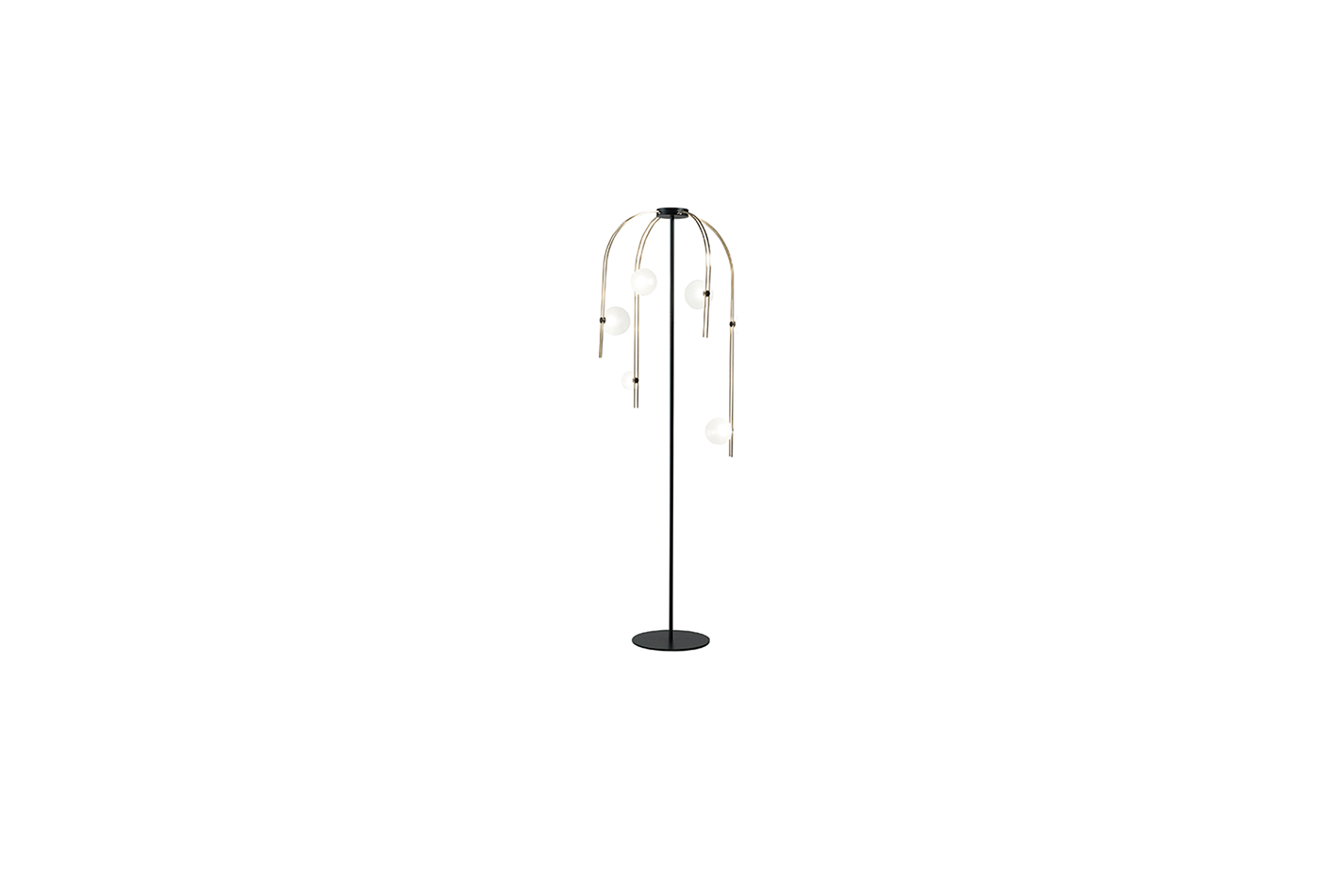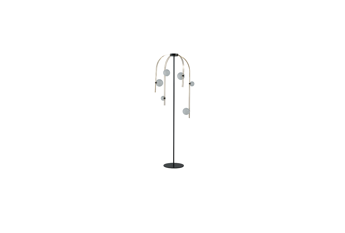 描述:落地灯,8个弧形臂,黄铜材质。 14个磨砂玻璃光源, 钢质灯架为哑光黑色饰面。