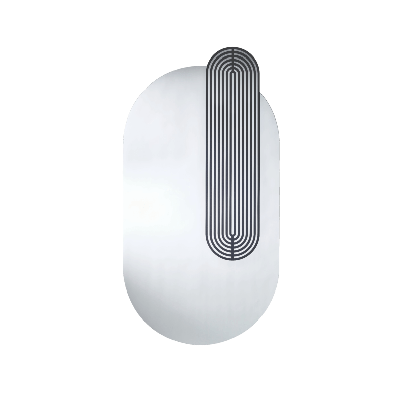 描述:椭圆形镜体,装饰着丝网印刷几何图案。