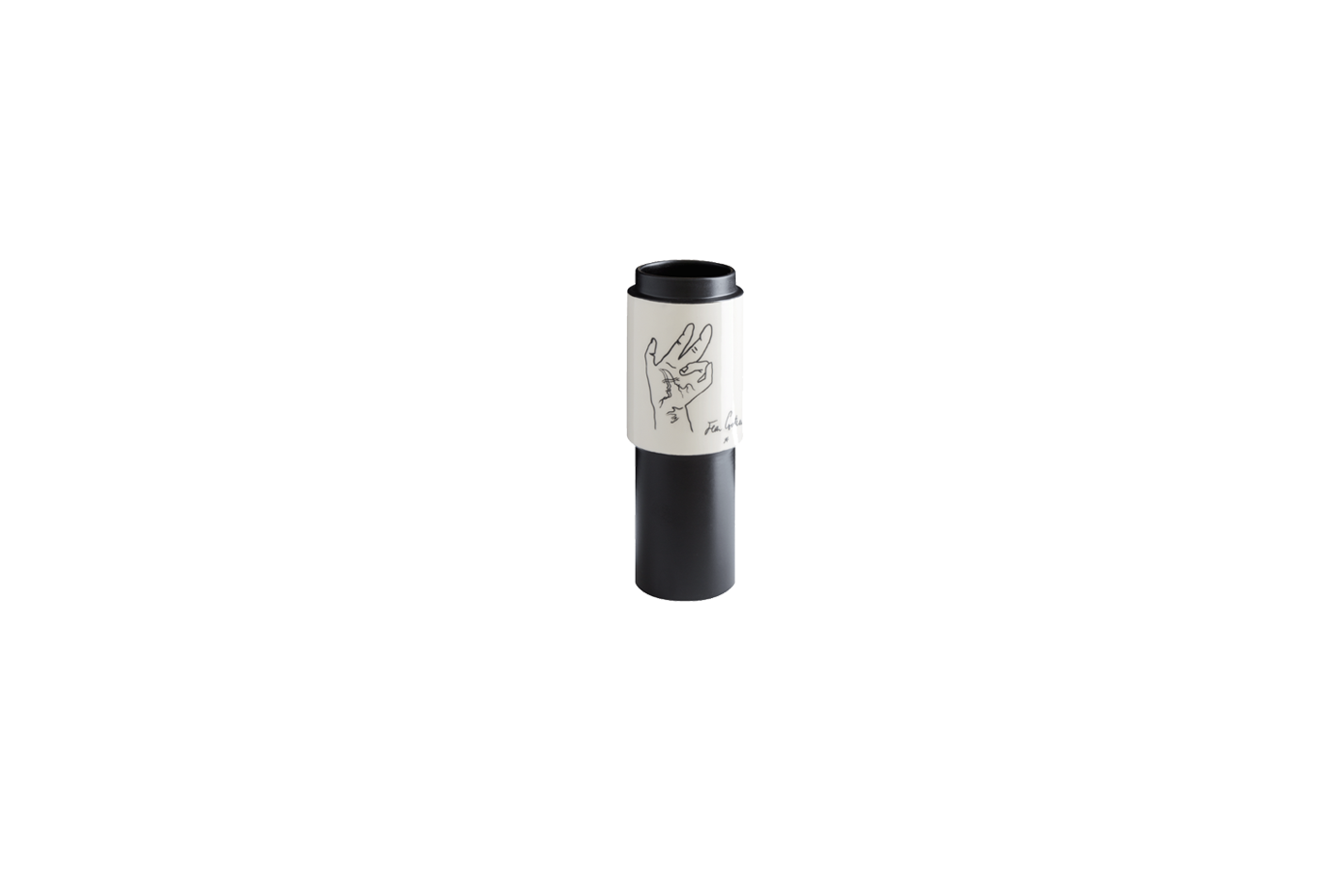 描述:红陶土花瓶,手工上釉,搪瓷装饰,图案为Jean Cocteau的画作。