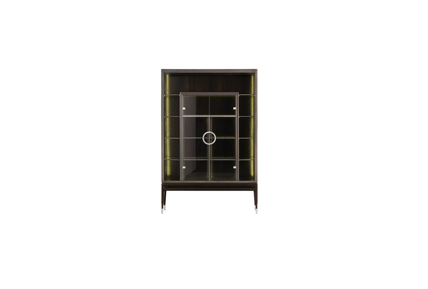 描述:8块隔板和2扇门采用6毫米厚的玻璃制成,书架结构为樱桃木。