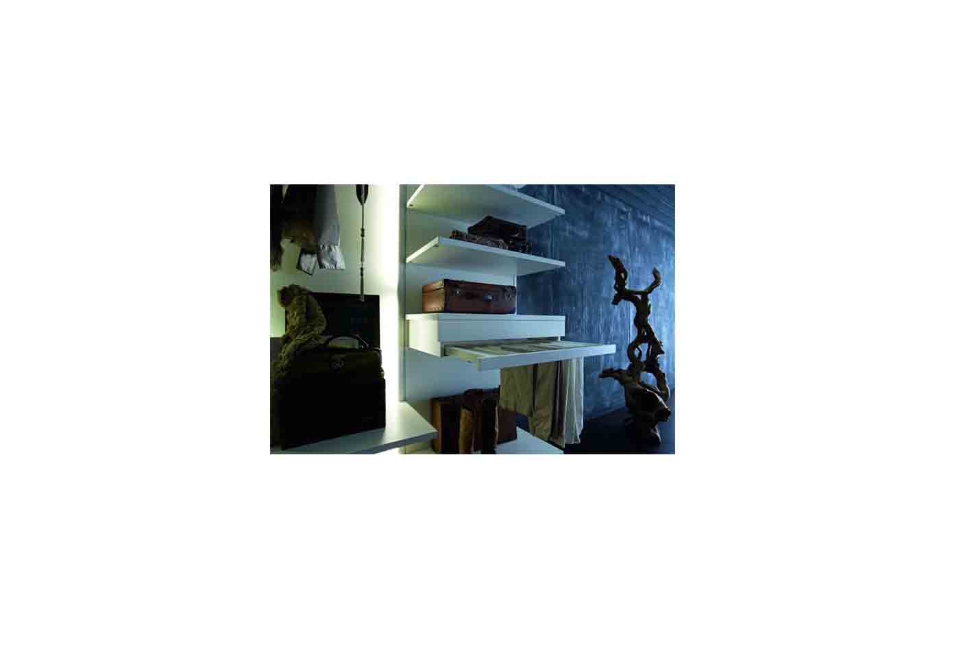 描述:包括3列。照明面板采用亚光甲基丙烯酸+自然铝表面。架子用金属支撑,表面涂有清漆铝制面漆。抽屉有软关闭机构。