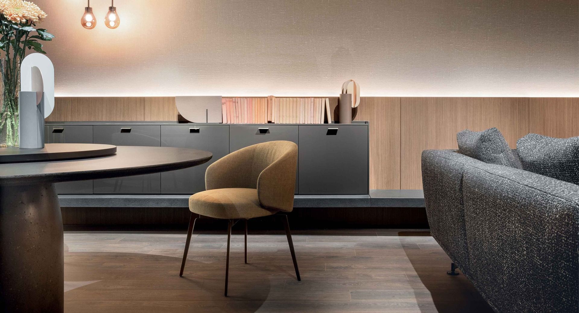 Roberto Lazzeroni设计的Bea餐椅,现代设计与复古精神交相辉映,以干净、精致的风格脱颖而出。Bea是国内和合同项目的完美之作,与Bice躺椅完美配合,营造出舒适的空间比例。它光滑的金属结构被织物或皮革覆盖物所抵消。