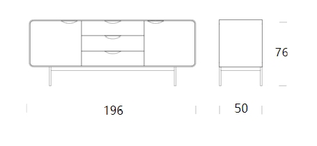 一种全面的设计,其中弯曲的木材欢迎涂漆的门和抽屉。细节决定成败,让您的客厅独一无二且适合。