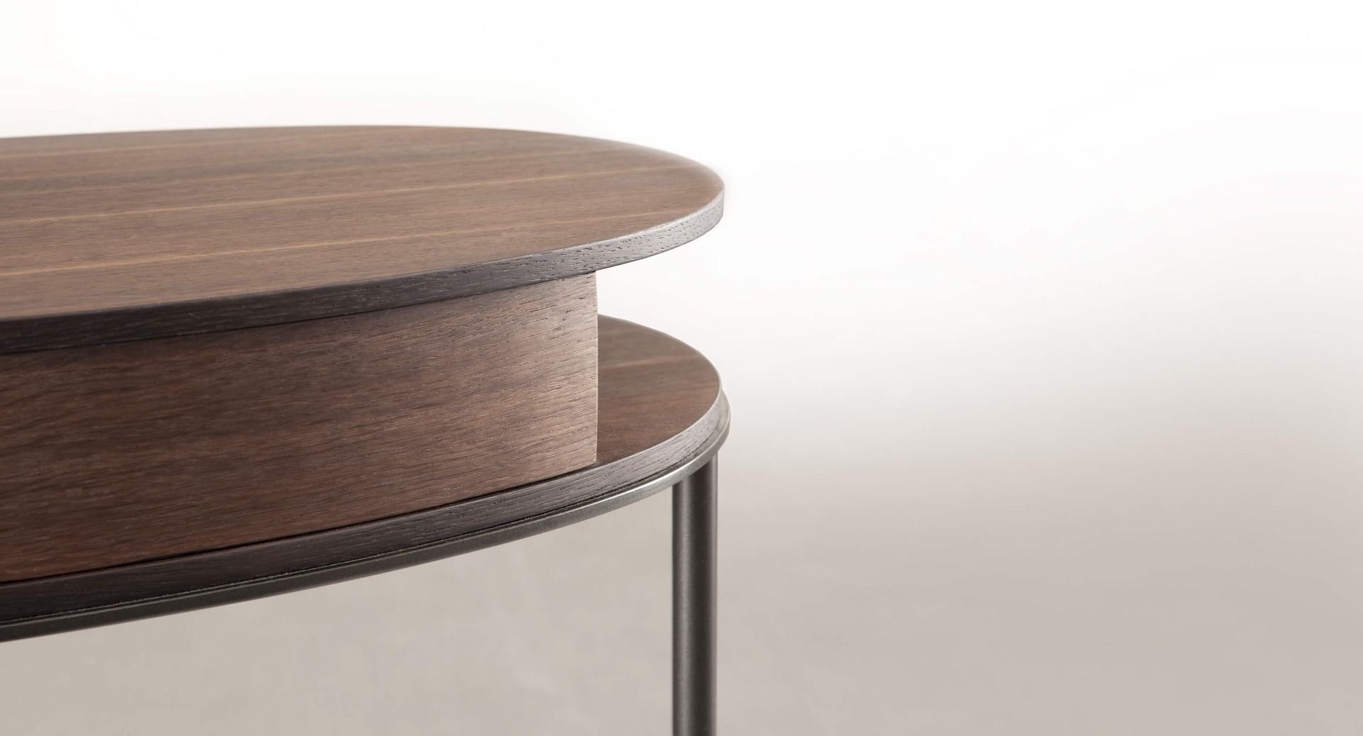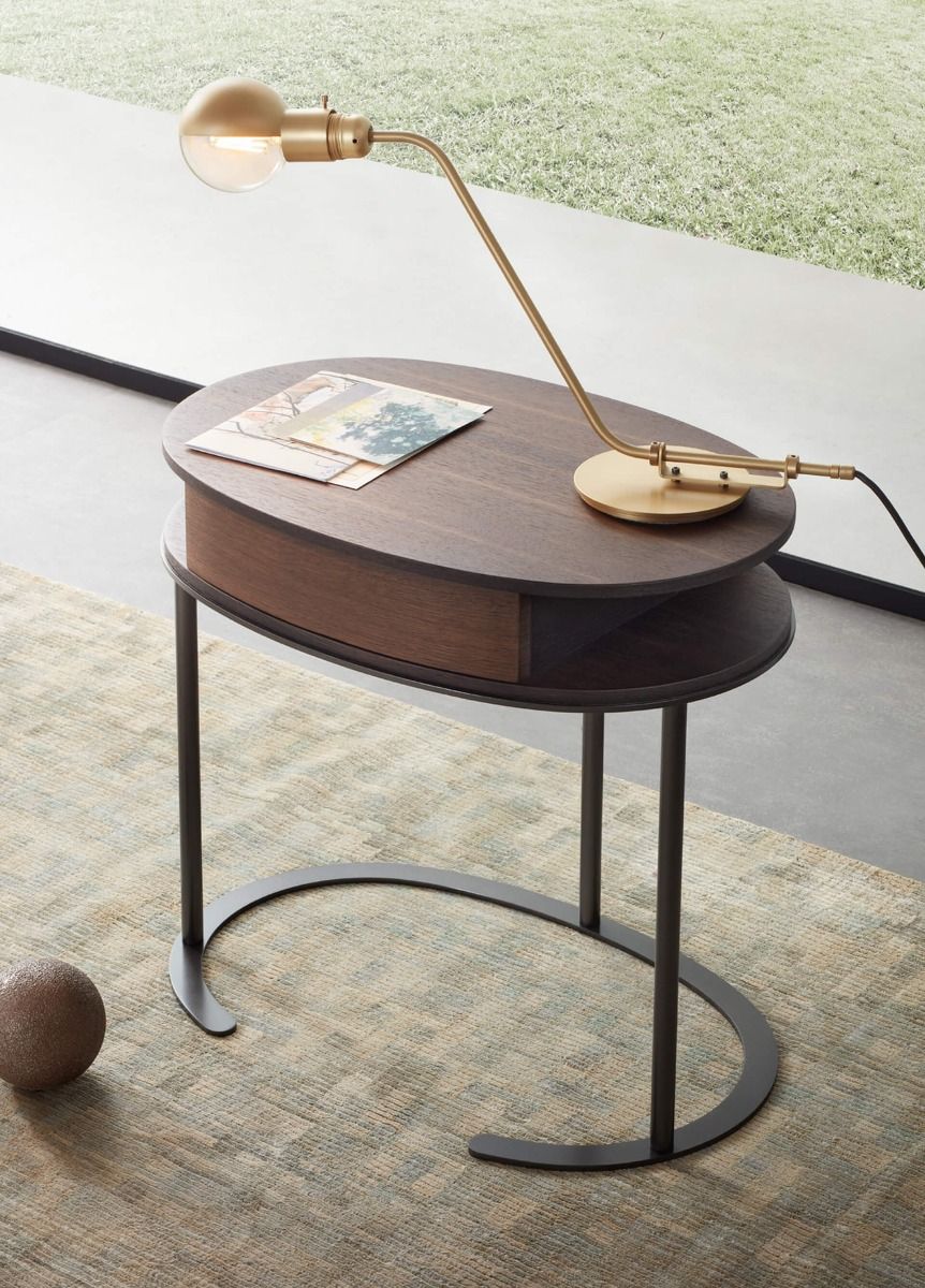 带抽屉的 Ortis 咖啡桌成为存储和隐藏小物体的标志性但功能齐全的配件。它被设计成放在床边,沙发或扶手椅旁边。专为卧室区域设计,还适合其他房间,增强休息室和社交空间。Ortis 咖啡桌以其精密的金属管结构而著称,该结构固定在底座的半圆形板材上,并配有椭圆形顶部,可在光泽、哑光漆饰面或木材中提供。
