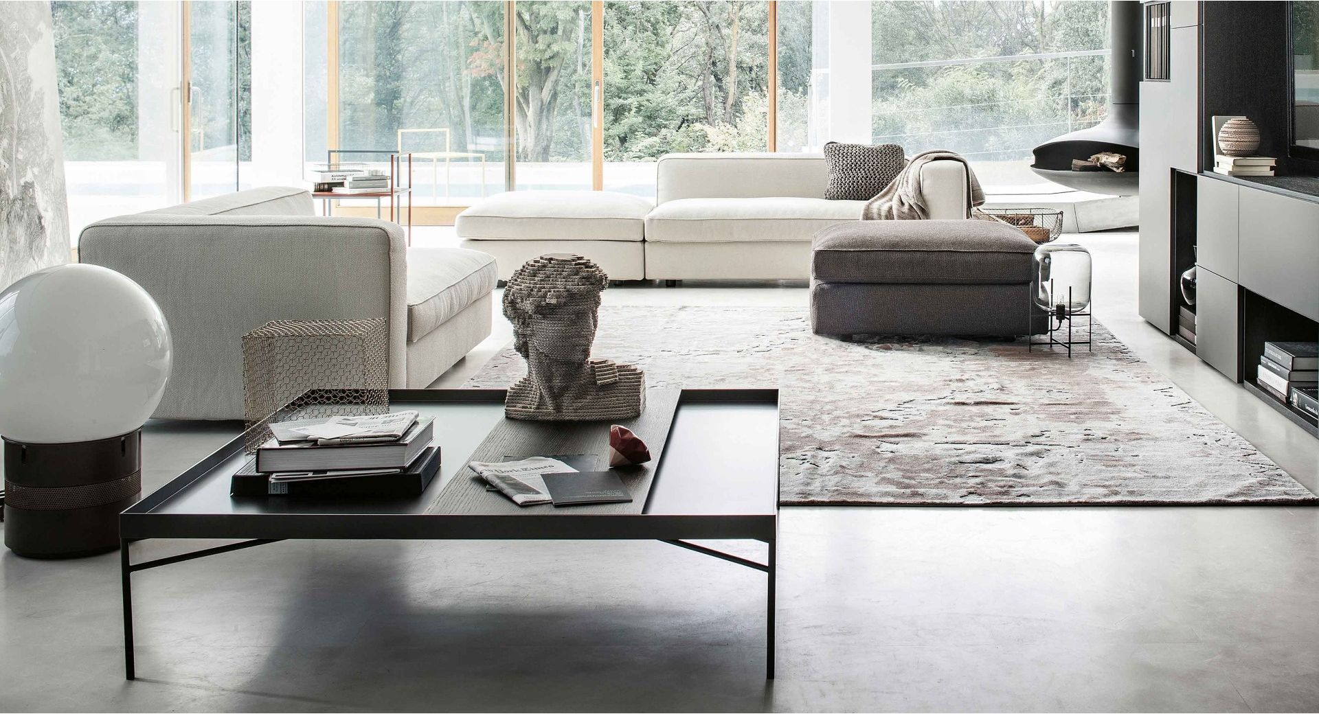MANSION咖啡桌的特点是一个轻巧的,几乎空灵的青铜色金属底座连接到一个托盘上,托盘由一种坚固的高科技材料制成,它既是一种存储元素,也是一种传统的桌子。一块令人惊叹的热处理橡木板横跨顶部,围绕材料和重叠表面的组合创造出独特的3D效果。