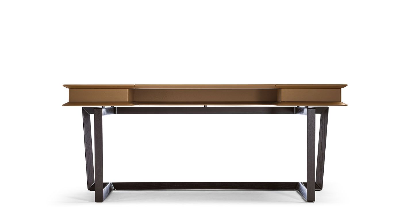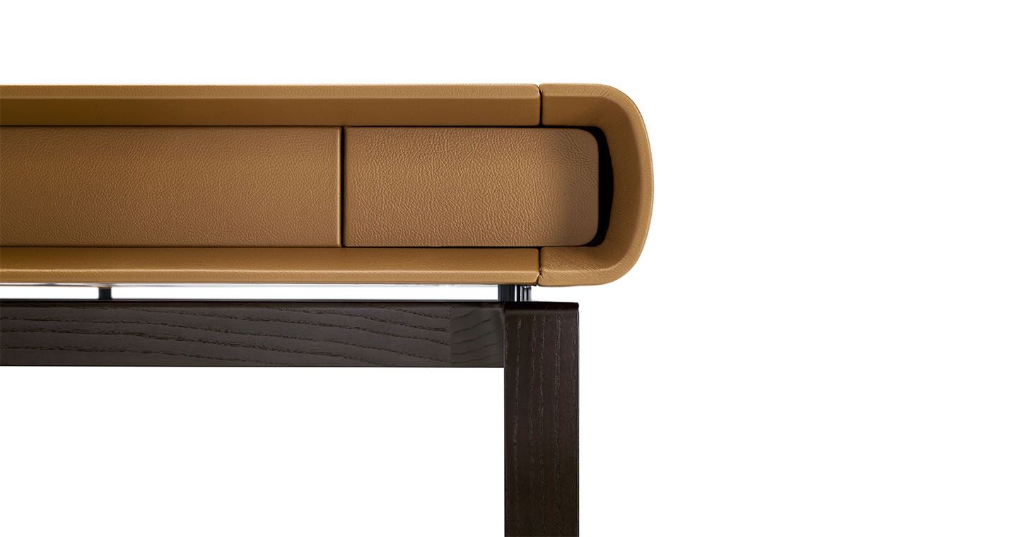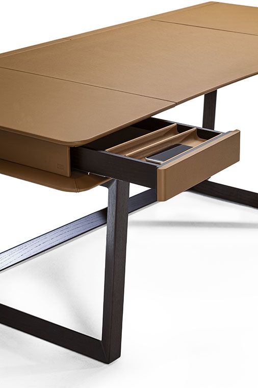 由罗伯托·拉泽罗尼设计,Peek-a Book办公桌体现了波尔特罗纳·弗劳办公室的所有典型优雅和舒适,将其引入国内环境。Lazzeroni 设想了宽敞的工作面和设计,重新审视其住宅收藏的材料、温暖和风格,同时保证"真正的"办公桌的所有功能。