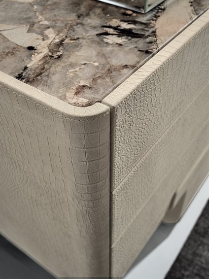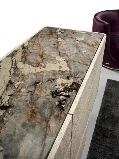 厚度20mm大理石:Portoro大理石、Fusion Light大理石、Patagonia大理石、Explosion Blu大理石、Fusion Multicolor大理石、Quarzo Juliet大理石、Calcite Azul大理石、Sahara Noir大理石(聚酯面漆)、Dover White大理石、Panda White大理石、Verde Guatemala大理石、Corteccia大理石、Port Saint Laurent大理石、Rosso Levanto大理石、Bardiglio Nuvolato大理石、Elegant Brown大理石、Palissandro Oniciato大理石、Emperador Dark大理石、Silver Wave大理石、Agatha Black大理石、Frappuccino大理石、Calacatta Gold大理石。把手的大理石,可依样本挑选或与台面相同。选购品:背后可加装两条可调光的led灯条,分别照亮柜子的上方与下方。照明灯源通过碰触开关控制。墙面将获得灯带照明的效果。