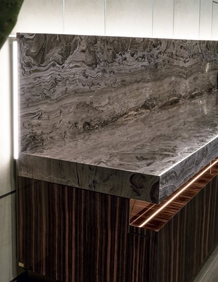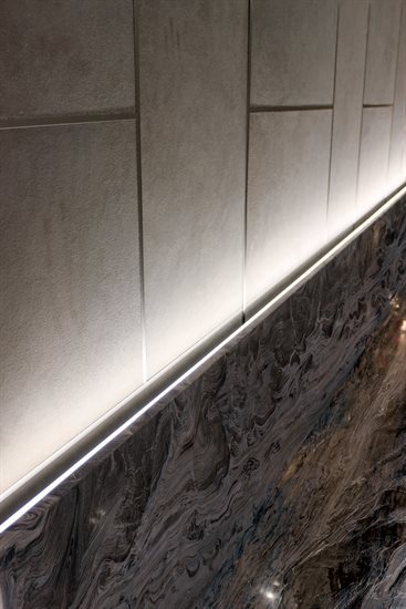此外另可选购添加台面后方大理石立板,高50cm,带碰触开关控制的可调光led灯。墙面将获得灯带照明的效果。