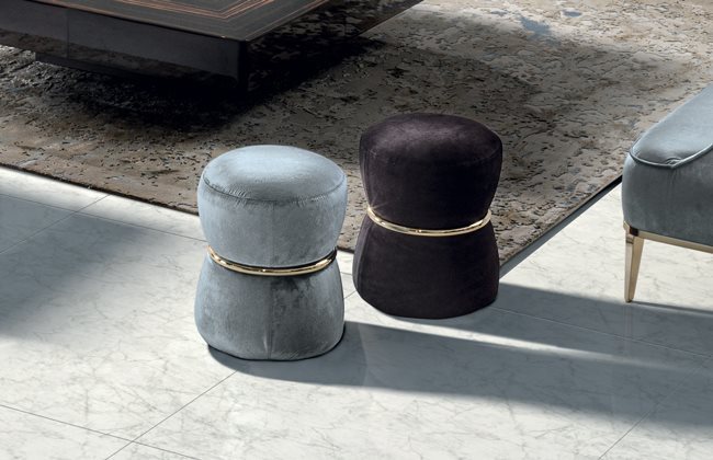 木材结构外覆中密度聚氨酯泡沫,带金属环嵌饰,饰面可选:亮光渐变棕、黑玫瑰金、亮光浅金、哑光香槟金、亮光镀铬、亮光镀黑铬、哑光缎面青铜、亮光玫瑰金、哑光玫瑰金。覆面不可拆卸。