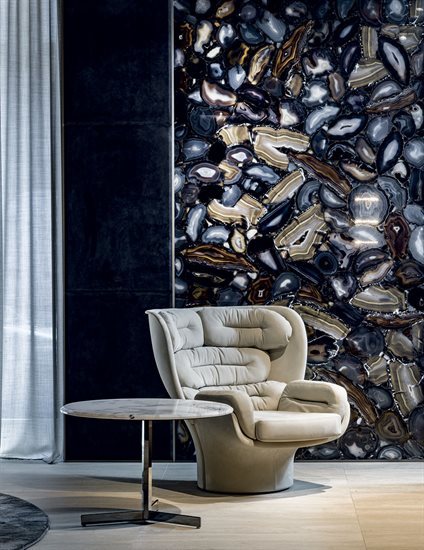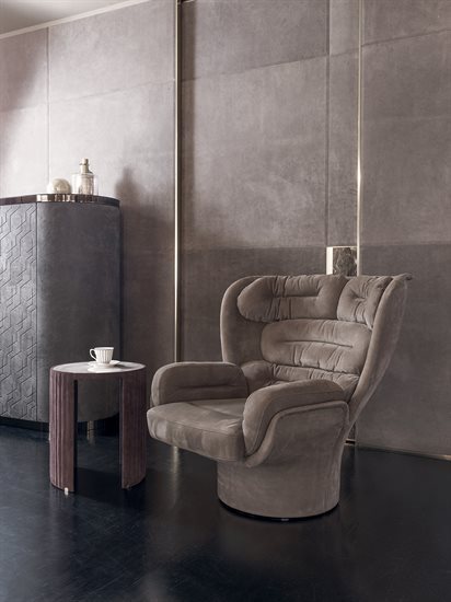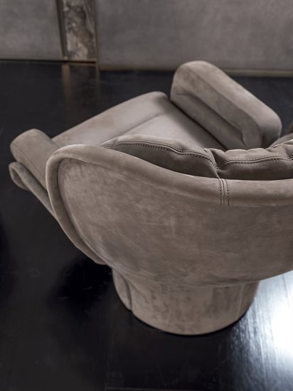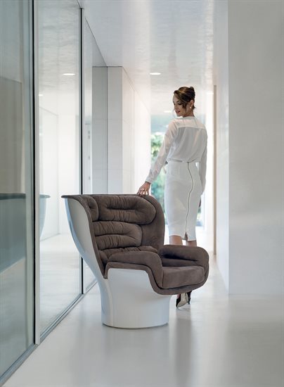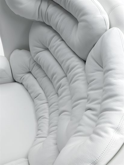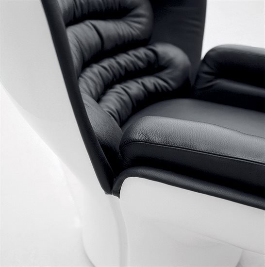 玻璃纤维结构可360°旋转,依据原创设计完全以手工技术压模制成。不同密度聚氨酯泡沫软包,符合人体学设计,达克纶聚酯纤维覆面。无论皮料或布料覆面,鉴于特殊的制作工艺,皆不可拆卸。外侧玻璃纤维壳体的颜色可选:白色、黑色、金属色:青铜色、灰色、蓝色。