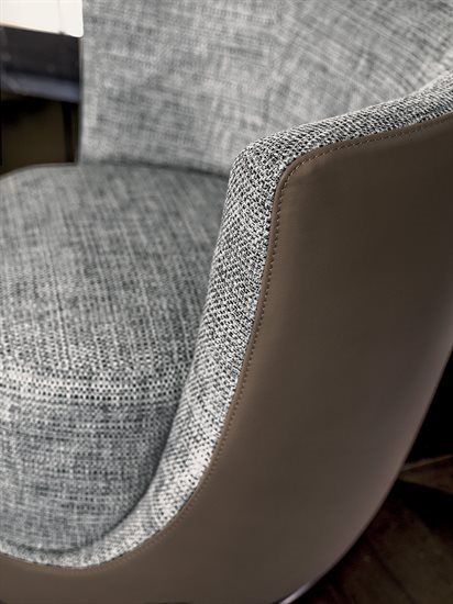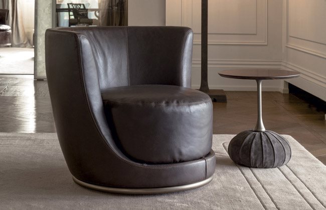 扶手椅带木材结构,外覆高密度聚氨酯泡沫。坐面采用木材框架搭配松紧带,外覆双重密度聚氨酯泡沫,再搭配柔软已灭菌鹅羽毛绗缝垫。底座可360°旋转。扶手椅底座带金属环装饰,饰面可选:黑玫瑰金、亮光浅金、亮光渐变棕、哑光香槟金、亮光镀铬、亮光镀黑铬、哑光缎面青铜、亮光玫瑰金、哑光玫瑰金。