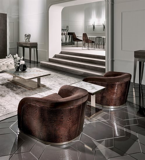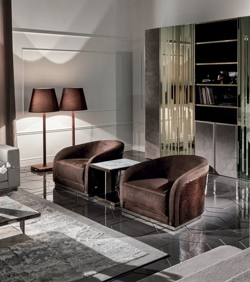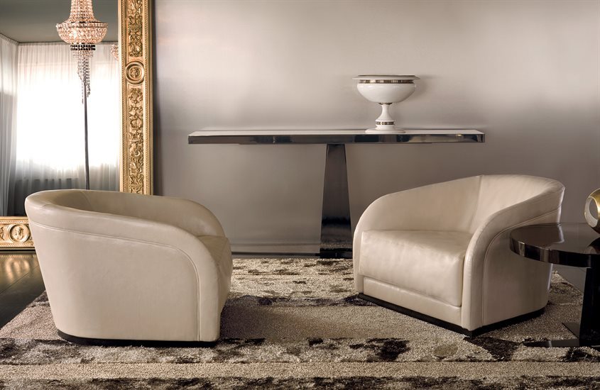 木材结构,搭配松紧带,外覆高密度不同软硬质的聚氨酯泡沫。坐垫为已灭菌鹅羽毛,内嵌不同密度聚氨酯泡沫。金属底座,漆饰青铜色或黑色。
