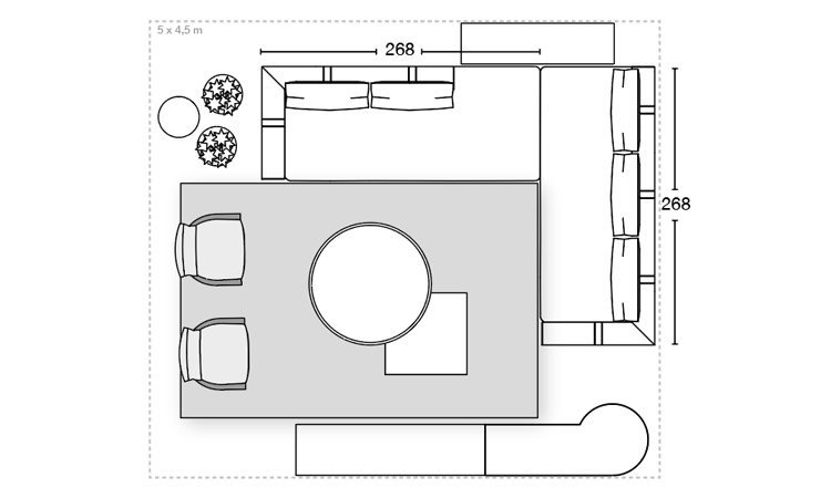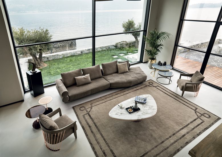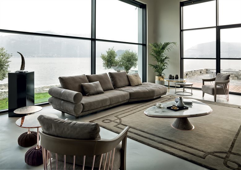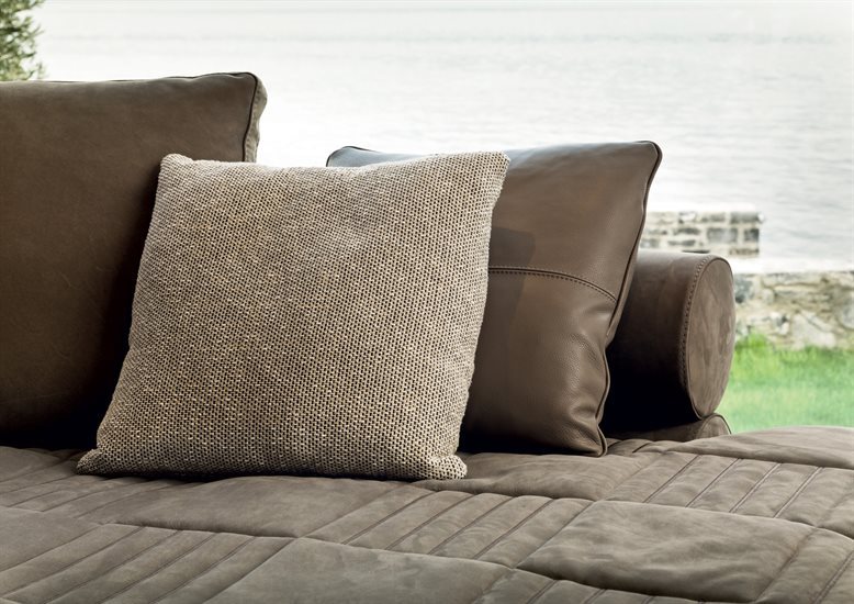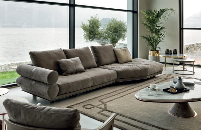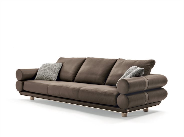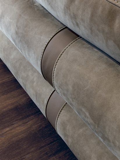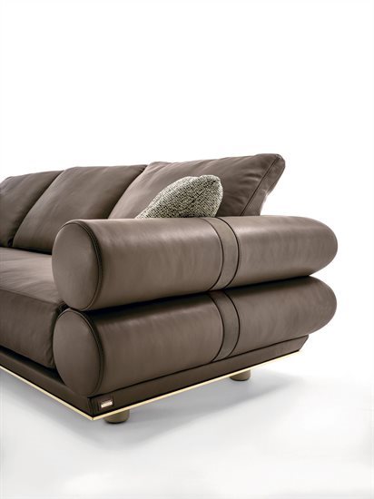 模块化沙发,可有多种摆设组合。以双层圆筒状椅背展现特色,赋予优雅、独一无二与专属的风格。结构饰面中缀有皮料或布料饰条,配色可选纯色,或进一步客制化地选用与沙发对比的颜色搭配。半转角单元的坐面,无论皮料或布料版本,皆可定制独特的棋盘格纹绗缝装饰,采用与沙发饰面对比颜色的缝线,通过270000针的浅缝刺绣制成。手工缝制的刺绣,赋予产品独一无二的特色。结构为木材搭配不变形松紧带,外覆高密度聚氨酯泡沫。鉴于特殊的制作工艺,覆面不可拆卸。坐垫,由不同密度的整块聚氨酯泡沫制成,无论皮料或布料版本的坐垫套皆可拆卸。其硬泡底层可维持稳定性并避免久压变形,而中软密度的第二层,则确保提供最佳舒适性。最表层另有一片记忆泡棉,确保坐垫可回到原始的型态。整体并覆盖已灭菌鹅羽毛填充的软垫,坐面因此拥有天然的柔软度。靠背垫,皮料或布料的枕套皆可拆卸,采用已灭菌鹅羽毛搭配柔软密度的聚氨酯泡沫填充。