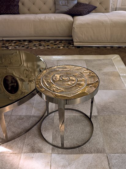 结构饰面:黑玫瑰金、亮光浅金、亮光渐变棕、哑光香槟金、亮光镀铬、亮光镀黑铬、哑光缎面青铜、亮光玫瑰金、哑光玫瑰金。台面饰面:陶瓷、亮光烤漆(颜色依样本挑选)、亮光∕哑光黑檀木、亮光∕哑光卡纳莱托核桃木、亮光∕哑光西克莫槭木、磨斜边黑色涂漆8mm水晶、磨斜边青铜色或烟熏色6mm镜面、Sahara Noir大理石(聚酯面漆)、Dover White大理石、Panda White大理石、Verde Guatemala大理石、Corteccia大理石、Port Saint Laurent大理石、Rosso Levanto大理石、Bardiglio Nuvolato大理石、Elegant Brown大理石、Palissandro Oniciato大理石、Emperador Dark大理石、Silver Wave大理石、Agatha Black大理石、Frappuccino大理石、Calacatta Gold大理石、Fusion Light大理石、Patagonia大理石、Explosion Blu大理石、Fusion Multicolor大理石、Quarzo Juliet大理石、Calcite Azul大理石,红色缟玛瑙、象牙白缟玛瑙。