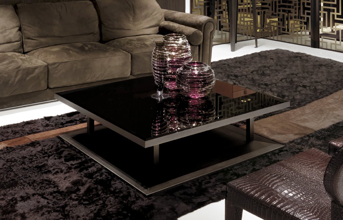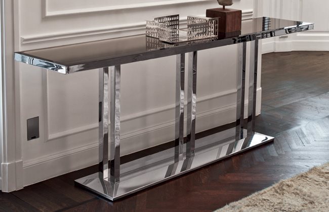 不锈钢茶几∕玄关桌,采用磨削工艺搭配激光切割制成。结构饰面:黑玫瑰金、亮光浅金、亮光渐变棕、哑光香槟金、亮光镀铬、亮光镀黑铬、哑光缎面青铜。台面可选:厚度20mm带磨斜边20mm大理石:Sahara Noir大理石(聚酯面漆)、Dover White大理石、Panda White大理石、Verde Guatemala大理石、Corteccia大理石、Port Saint Laurent大理石、Rosso Levanto大理石、Bardiglio Nuvolato大理石、Elegant Brown大理石、Palissandro Oniciato大理石、Emperador Dark大理石、Silver Wave大理石、Agatha Black大理石、Frappuccino大理石、Calacatta Gold大理石、Fusion Light大理石、Patagonia大理石、Explosion Blu大理石、Fusion Multicolor大理石、Quarzo Juliet大理石、Calcite Azul大理石、磨斜边黑色涂漆8mm水晶、磨斜边青铜色或烟熏色6mm镜面。