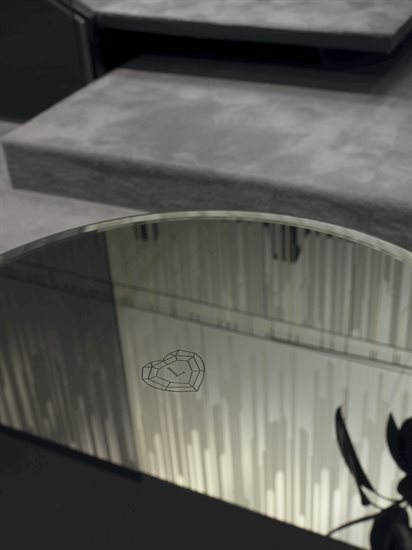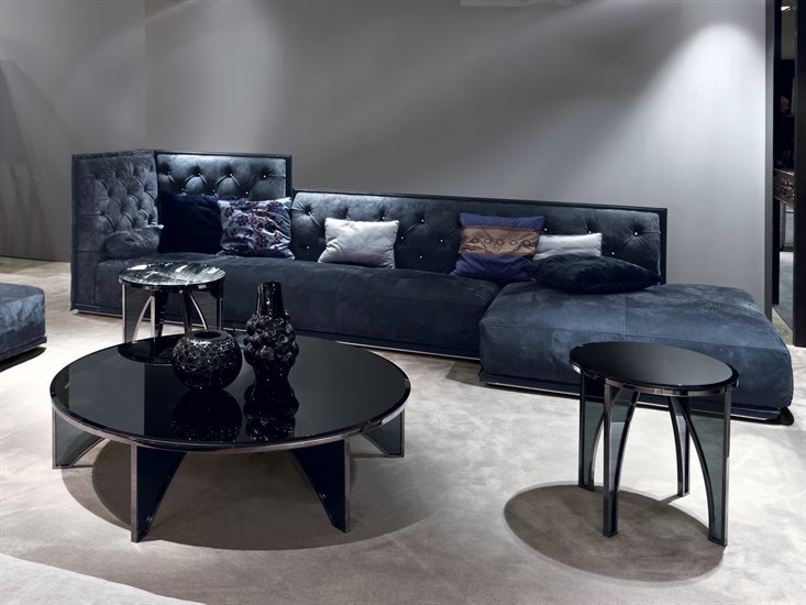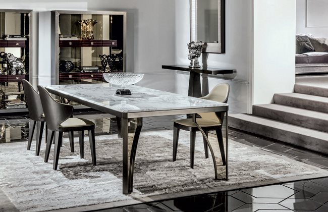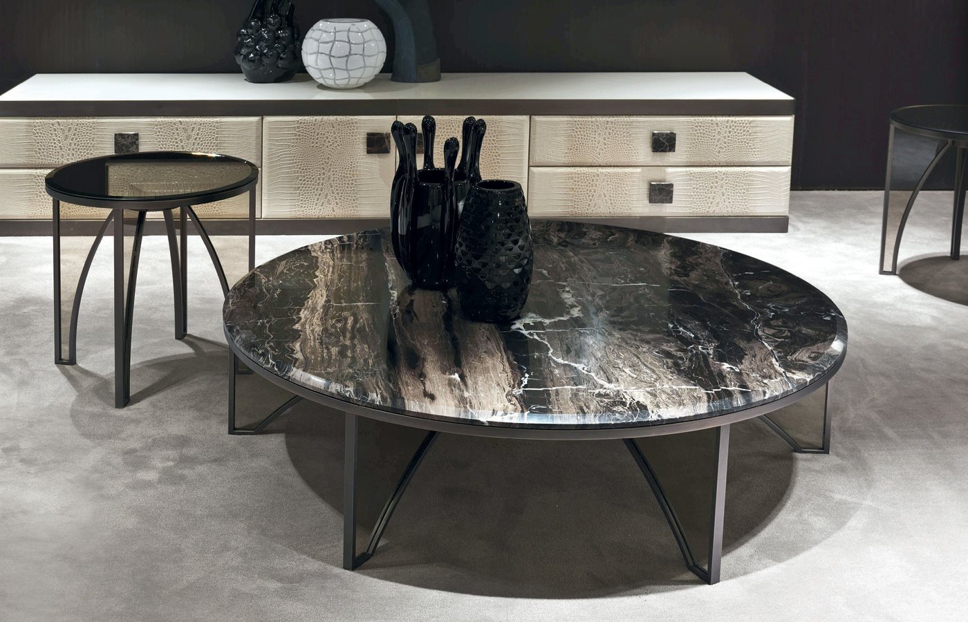 结构饰面:黑玫瑰金、亮光浅金、亮光渐变棕、哑光香槟金、亮光镀铬、亮光镀黑铬、哑光缎面青铜。台面饰面:青铜色或烟熏色镜面,厚度6mm带磨斜边;暗烟熏色玻璃,厚度10mm带磨斜边;厚度20mm磨斜边20mm大理石:Sahara Noir大理石(聚酯面漆)、Dover White大理石、Panda White大理石、Verde Guatemala大理石、Corteccia大理石、Port Saint Laurent大理石、Rosso Levanto大理石、Bardiglio Nuvolato大理石、Elegant Brown大理石、Palissandro Oniciato大理石、Emperador Dark大理石、Silver Wave大理石、Agatha Black大理石、Frappuccino大理石、Calacatta Gold大理石、Fusion Light大理石、Patagonia大理石、Explosion Blu大理石、Fusion Multicolor大理石、Quarzo Juliet大理石、Calcite Azul大理石。桌脚嵌饰青铜色或烟熏色玻璃。