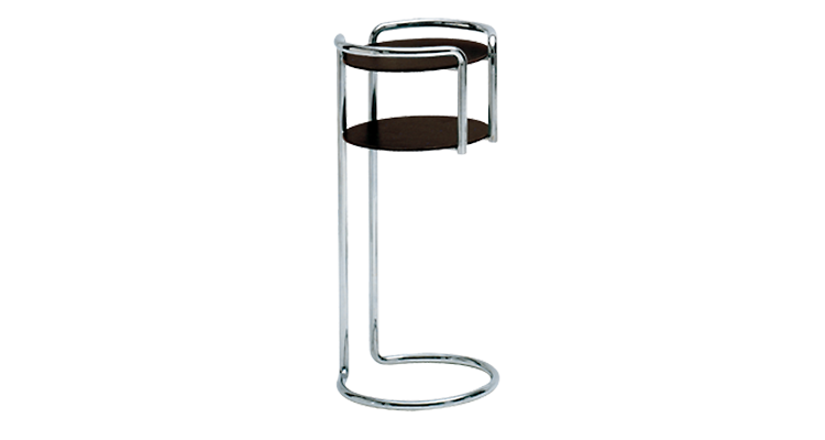 置物架/电话架。镀铬钢管框架结构。白/黑双色搁架,覆以塑料层压板。