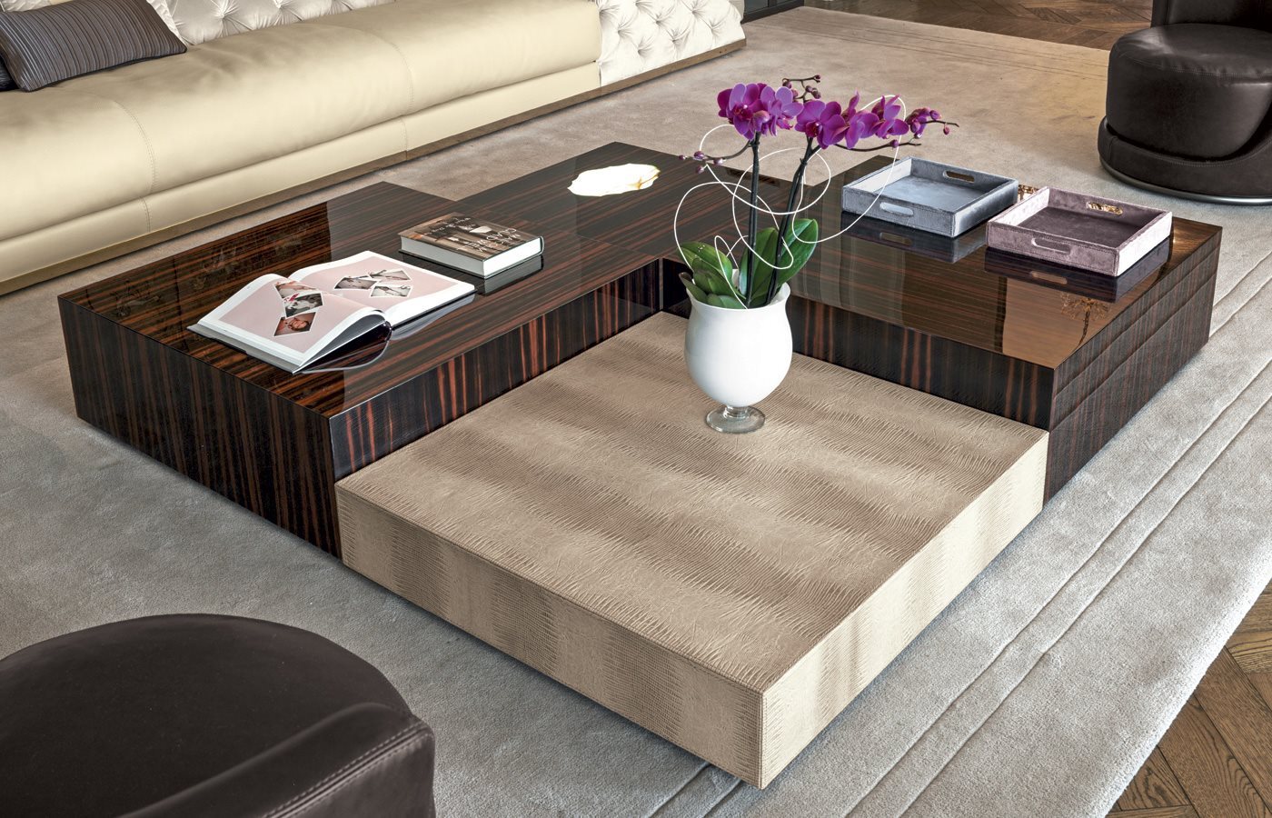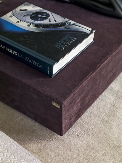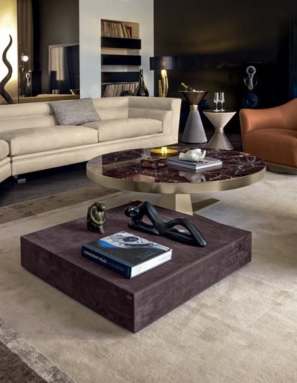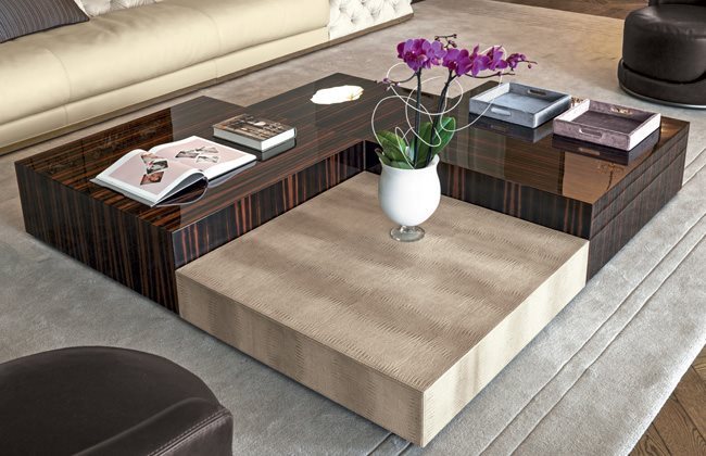 木质系列茶几,共有两种不同的高度,缟玛瑙桌面的版本也可嵌入灯光。木质台面可选:亮光烤漆(颜色依样本挑选)、亮光∕哑光黑檀木、亮光∕哑光卡纳莱托核桃木、亮光∕哑光西克莫槭木、亮光胡桃木树榴、皮料覆面(依样本挑选)。覆面的托盘使系列更加完善。