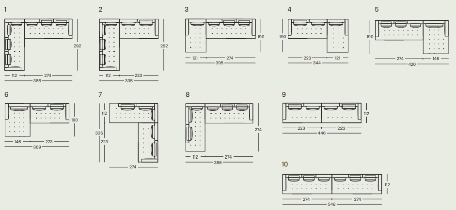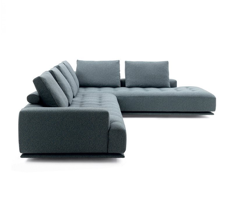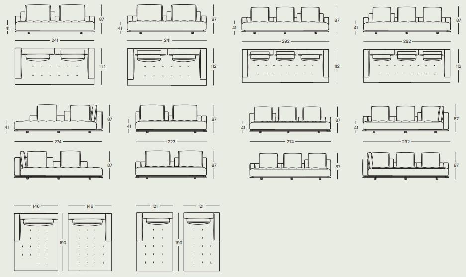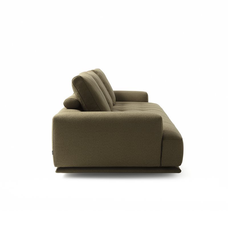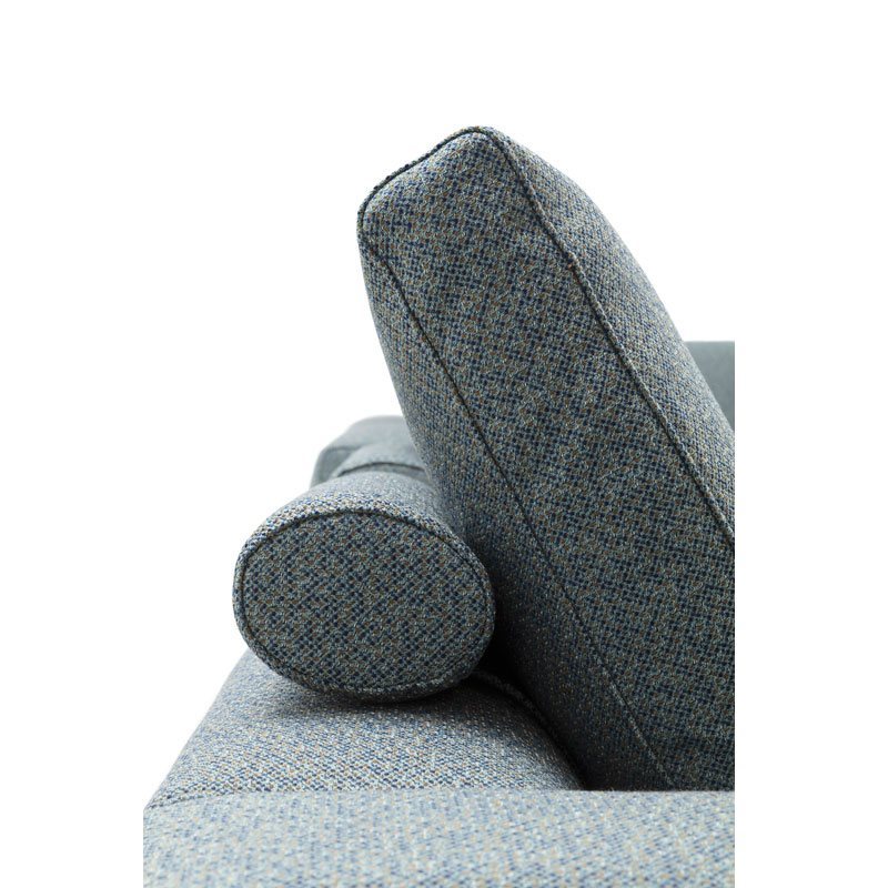 一体沙发和组合沙发。木底座,覆以同色布料或真皮。木框结构。弹力条悬挂。靠背和椅座包覆渐变聚氨酯/热粘合聚酯纤维衬垫。靠垫内芯填充百分百新鹅毛。柱形抱枕内芯填充聚氨酯/热粘合聚酯纤维。布料或真皮护套可拆卸,搭配绗缝坐垫。仅限一体沙发款,可按需提供全高靠背。