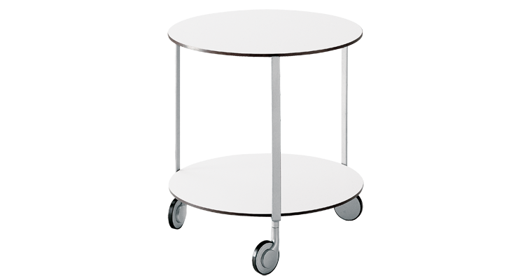 轮几:铝漆钢架结构。 搁架覆以白色塑料层压板。