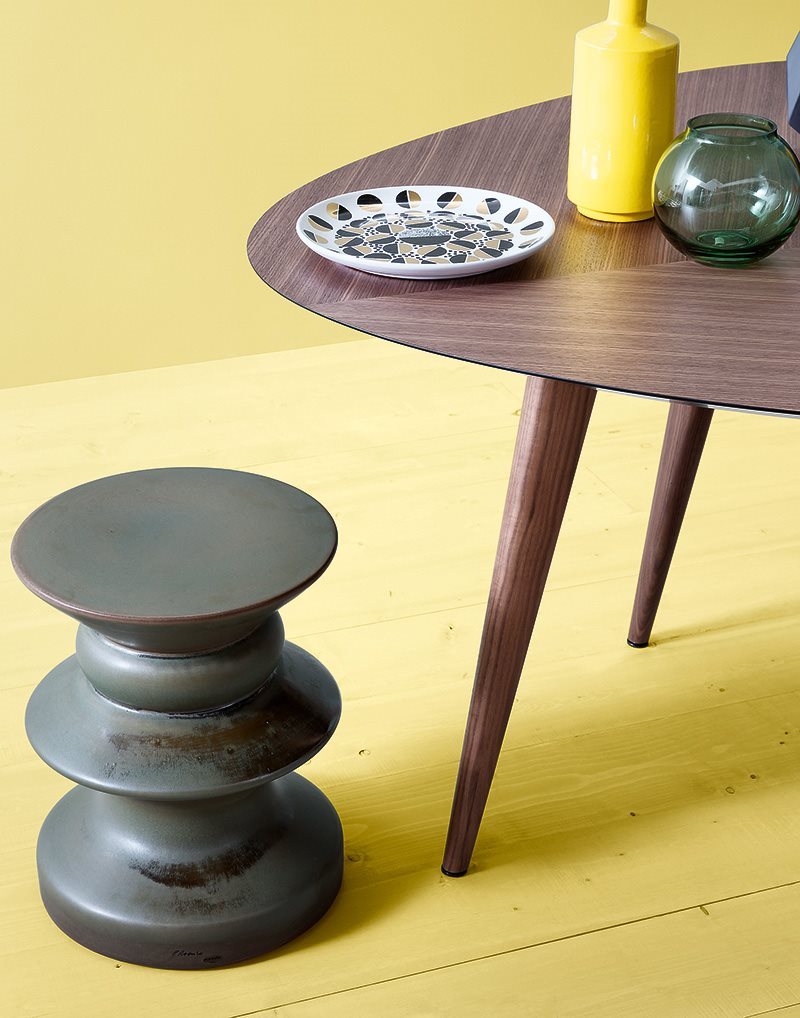 多功能桌:防冻框架结构,细瓷砂岩材质,适合户外使用,两层手工塑形,厚度合理,1250摄氏度烘烤,36小时加工周期,呈绿黄色。