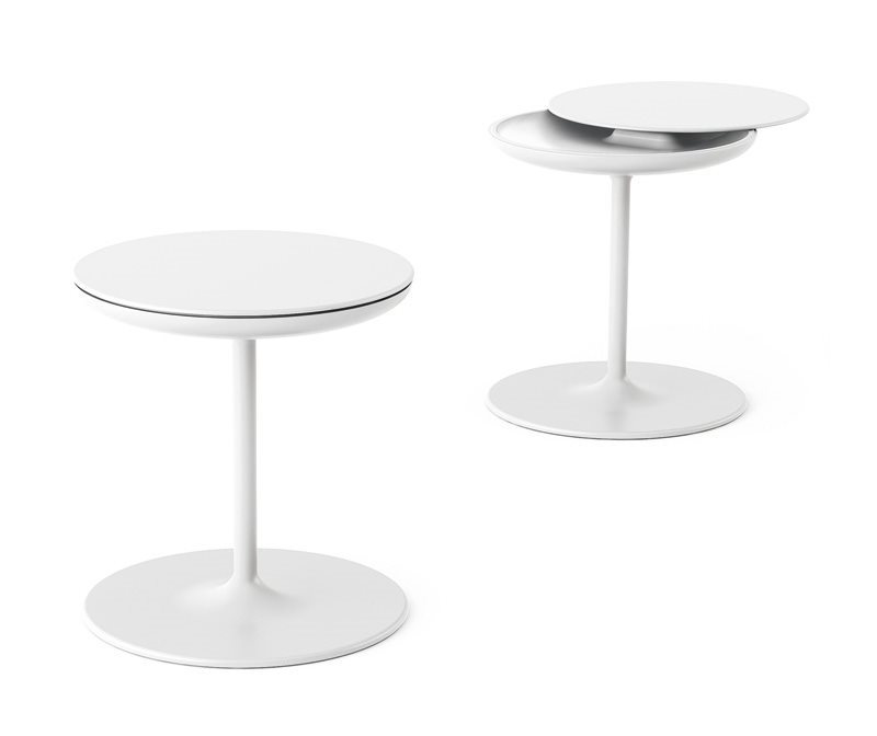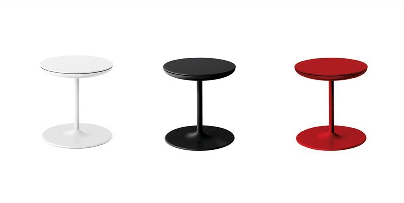 台几:硬质聚氨酯框架结构。胶合板台面,铝合金盖。有黑、白、红色光漆三款可选。台面360度旋转,收纳仓可打开。