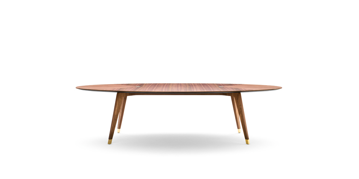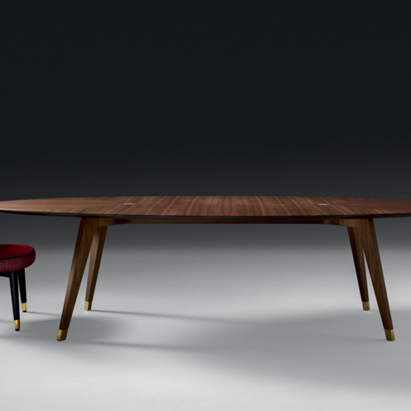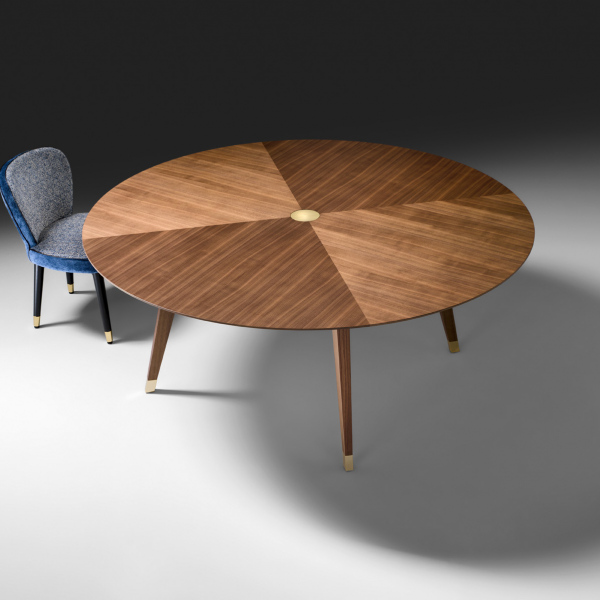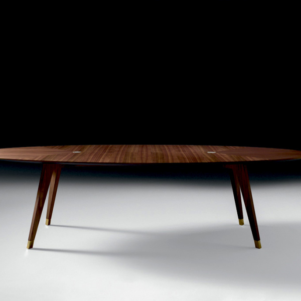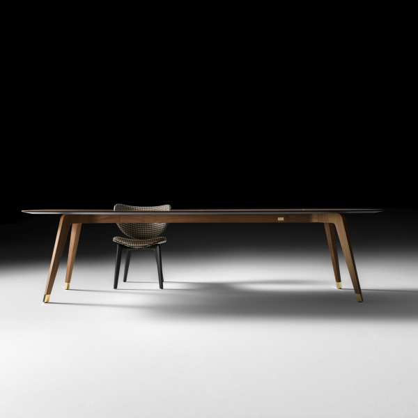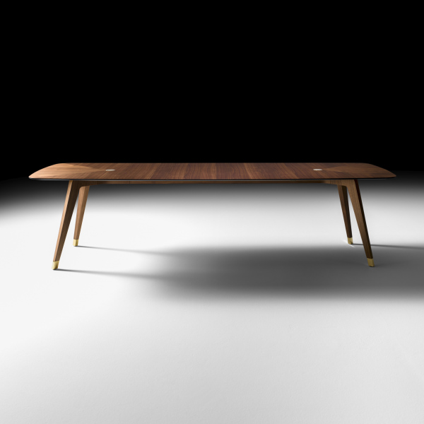 轻盈是由小细节的平衡,这给整个结构的表一个意想不到的轻浮其大小。珍贵的固体卡纳莱托核桃因此成为一个非常轻的纯形状和材料的顶部,以举办愉快的欢乐时刻或严格的专业场合。黄金饰面的中央插入物是黑铁表优雅的进一步标志,谨慎和性格。