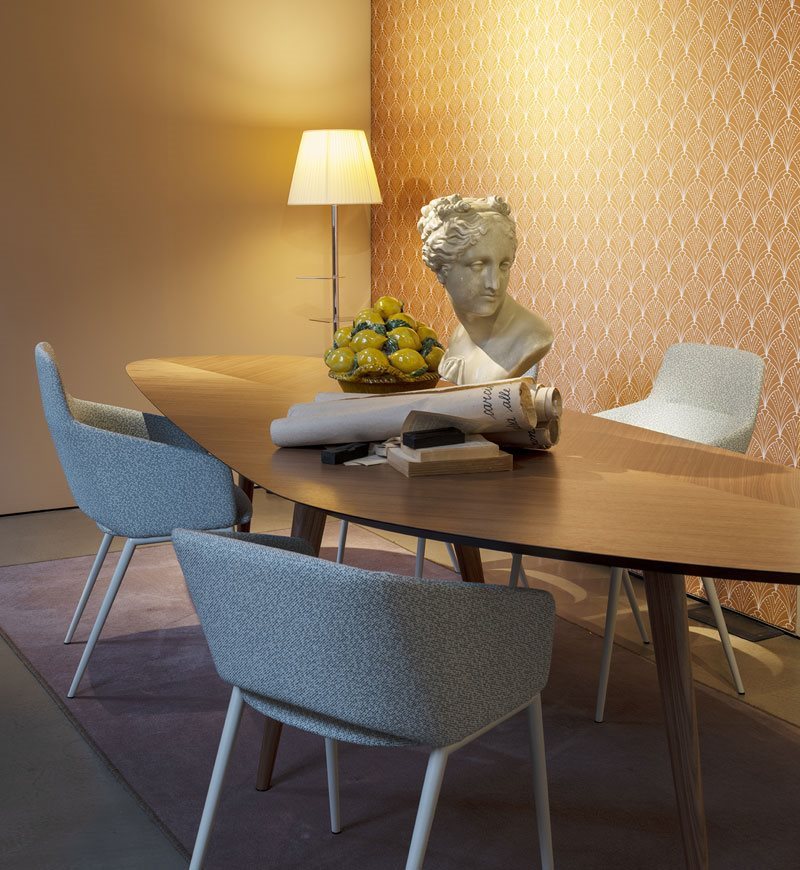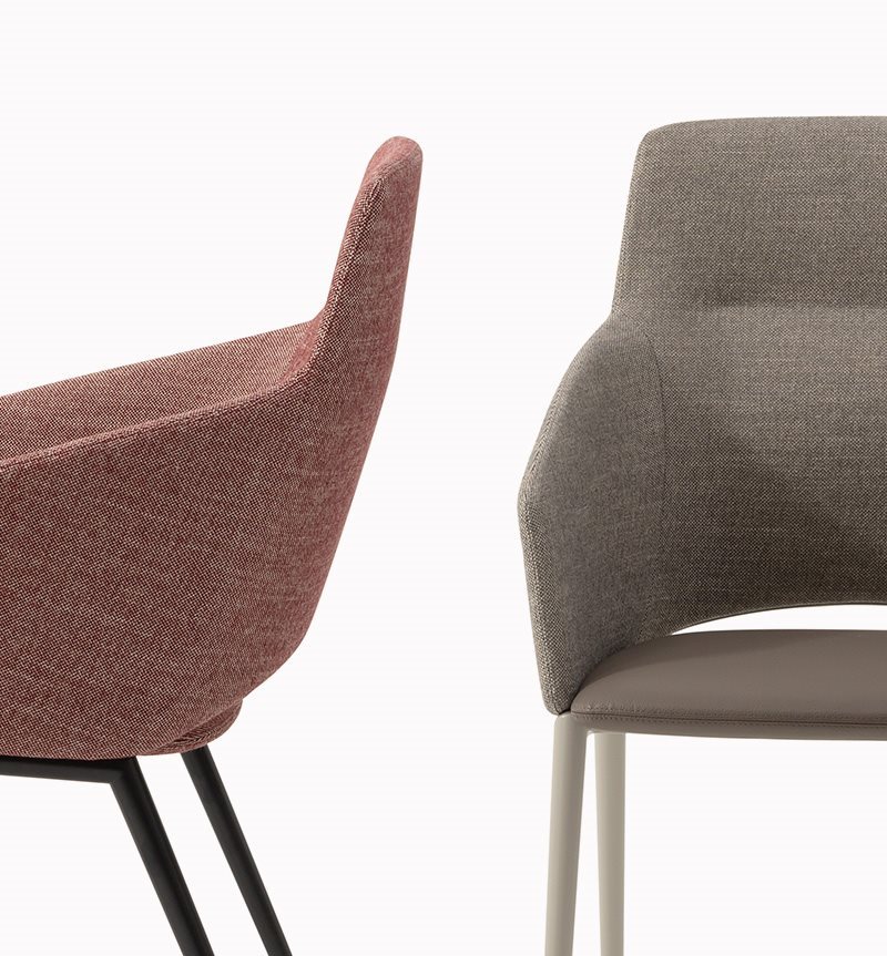 高背扶手椅。 灰白或黑漆钢质椅腿。 胶合板座椅包覆会自己熄灭的聚氨酯泡棉。 钢质靠背包覆会自己熄灭的聚氨酯泡棉衬垫。 布料或真皮护套可拆卸。 坐垫和靠背覆以95号真皮的款式,还提供目录30布料包覆。