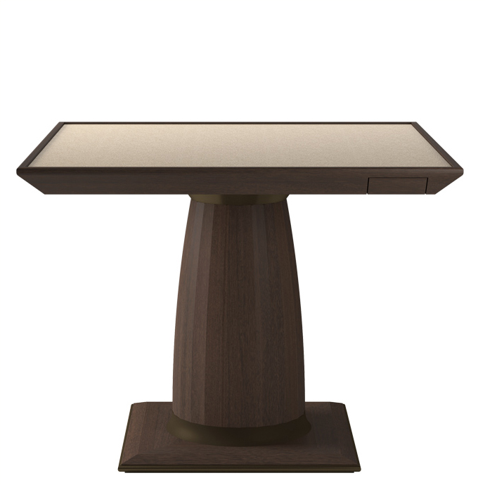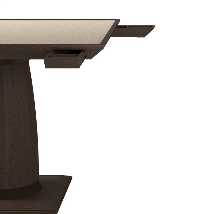 方形游戏桌,用于纸牌和麻将苏库皮拉或天然橡木结构,桌面配有纳米技术无污渍软化毡玻璃,配有四个抽屉,用于薯条和饮料、金属零件。