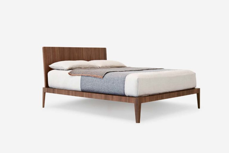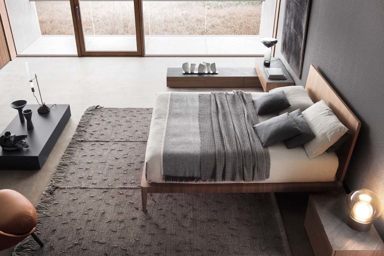 对称性和简单性创造了一个令人放心但不拘一格的设计。清洁的体积、无缝的表面、纤细和圆润的轮廓是传达坚固性和现代性的表达语言的一部分。脚,类似于优雅,纤细的高跟鞋,成为迷人的特色。对于更温暖、更精致的版本,床头板和床架可以用织物或皮革装饰。甚至床的框架也可以在很多方面定制:它提供哑光漆和木材。