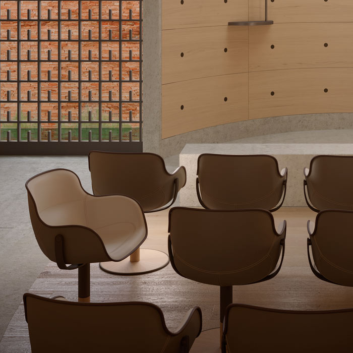 物理转动,座位、靠背和饰边以皮革或面料包覆,相思木或天然橡木基座,金属结构。