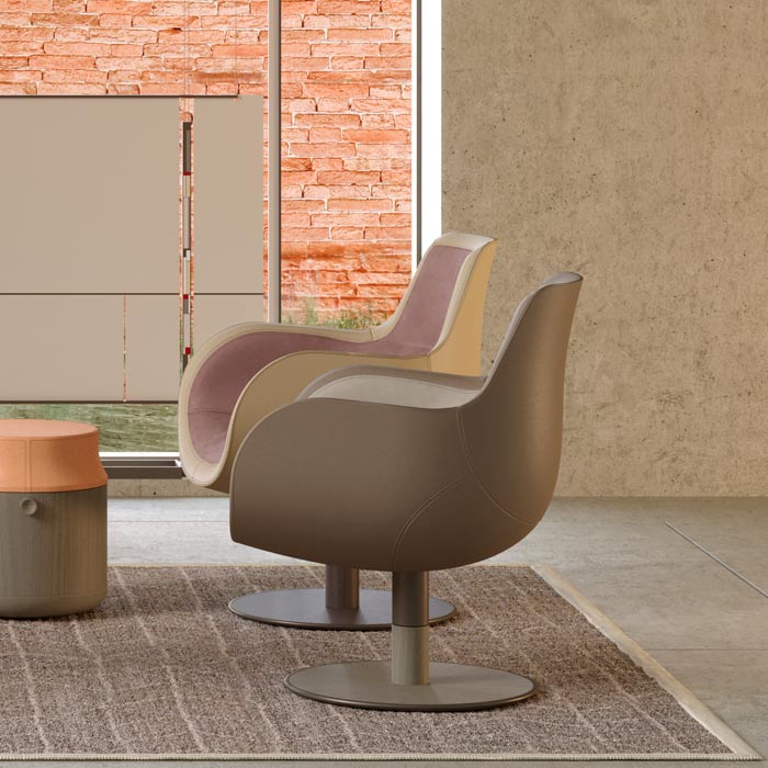 相思木或天然橡木结构,软垫沙发,以面料或皮革包覆。金属椅脚末端。