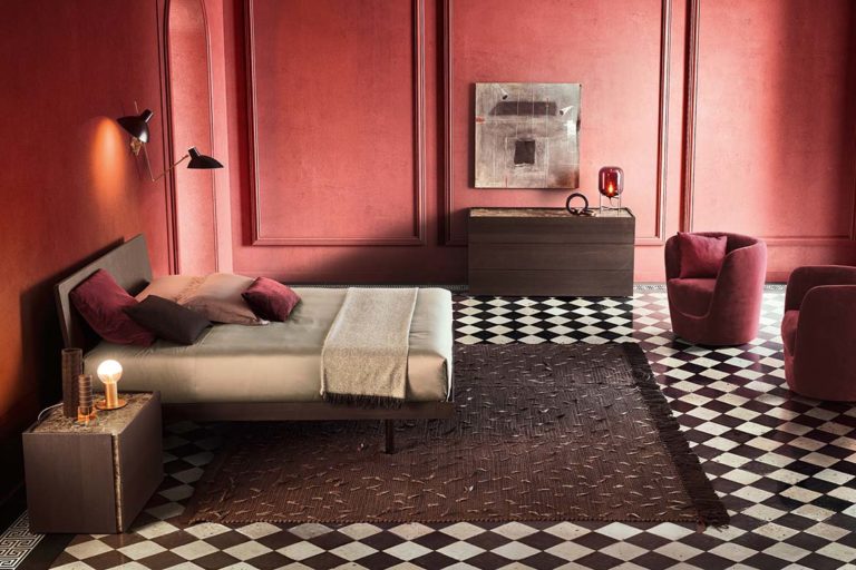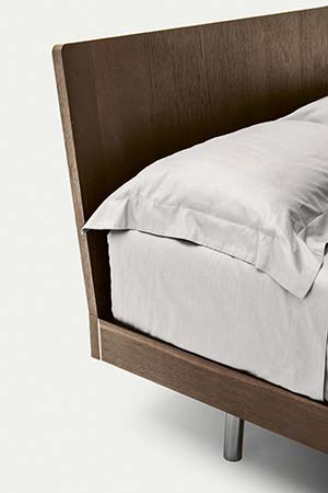 多功能床可在许多版本。个人口味,用来定制各种元素,偷这里节目。框架由简单、干净的切割线组成,可在木材、哑光或光泽漆或纹理表面提供。底座有两个选项:带脚的经典版本或包含存储隔间的版本,由内倾斜体积组成,增强实用性,使床具有轻盈通风的吸引力。头板可以用织物或皮革装饰。