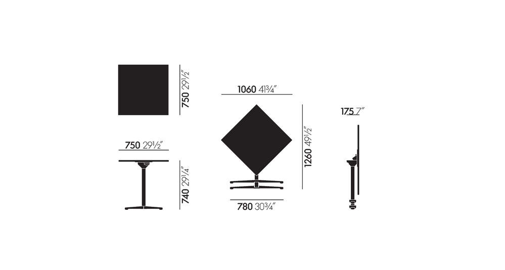 Jasper Morrison 的 Super Fold Table 只需轻轻一动手就可以完全折叠起来,四星底座的腿也旋转并垂直对齐,以实现紧凑的节省空间的存储。超级折叠桌有多种材料,具有不同形状的桌面。它有坐高和站高两种版本。