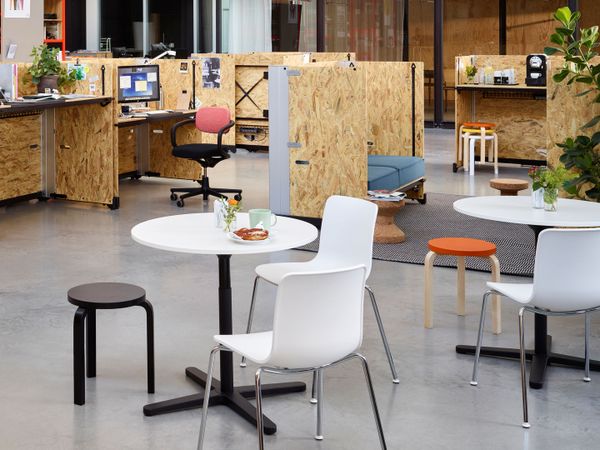 得益于精密的机械装置,Jasper Morrison 的 Super Fold Table 只需轻轻一挥手即可完全折叠起来。四星底座的支腿也可以旋转,使其垂直对齐,从而实现紧凑的节省空间的存储。桌子有多种材料,桌面形状各异,也有坐高版本。