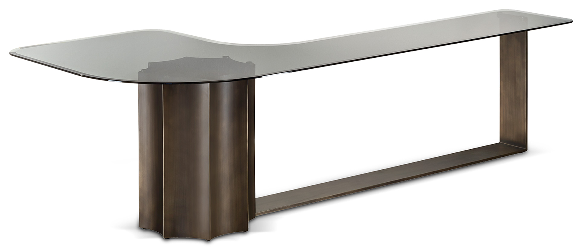 它们以三种形状和三种尺寸构思,由玻璃顶部组成,上部有可见的研磨。底座由弯曲的钢制成,有凹形弯曲的部分,焊接和抛光,营造出一种优雅的光和暗的游戏,任何选择的完成。最小的咖啡桌,高和矩形,是一个伟大的沙发边,低和大的咖啡桌是一个经典的咖啡桌中心沙发或沙发前面。L 形咖啡桌的特殊形状使其非常适合带半岛或躺椅的沙发。