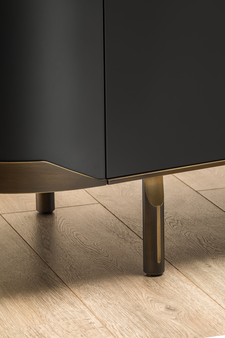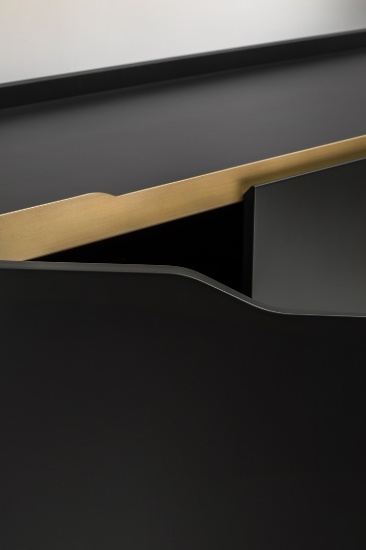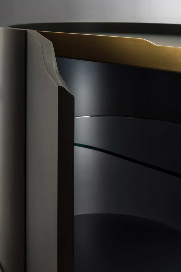 车门的人体工程学开口允许形状的极端本质。侧门的形状是揭开一个固定在木头上的扁平金属板。顶部可以是木头或石材和大理石点缀。内部由形状的玻璃顶接地和抛光线分割。玻璃的脚和支架是可调节的。Oasi 的创新系列具有典型的金属轮廓,以他们优雅地包围了家具的结构。