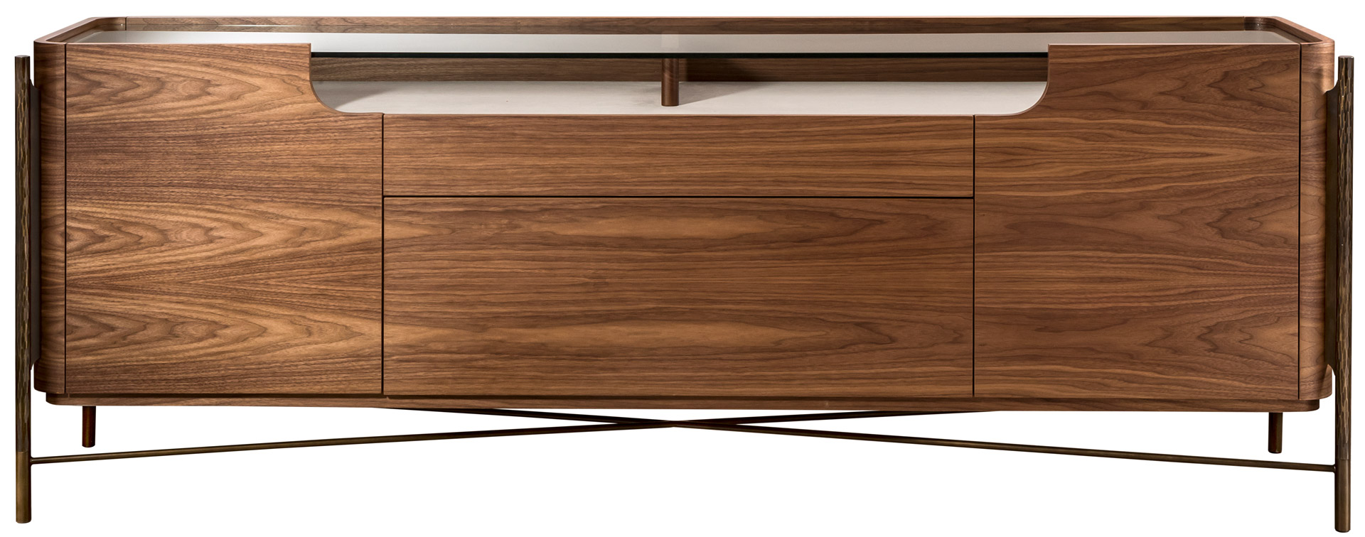 上海梳妆台或木制侧板,由两个侧门、两个带制动召回关闭的中央抽屉和玻璃顶部组成。