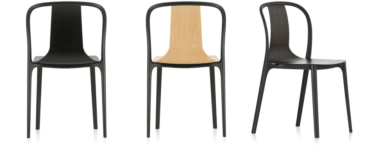 贝勒维尔座椅由两个主要部件组成 - 座椅外壳和由塑料制成的细长黑色结构框架,无论有没有扶手。座椅外壳从宽大的座椅逐渐缩小到狭窄的靠背,赋予了贝勒维尔座椅独特的特性:模制的胶合板贴面外壳赋予它木椅的外观。
