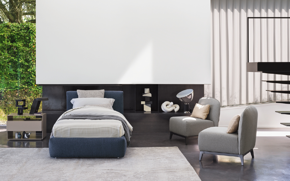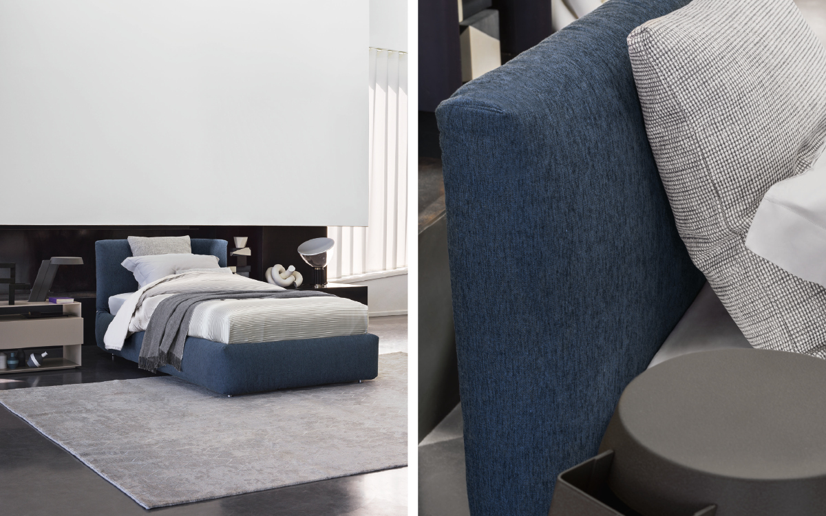 这张床的底座和床头板已完全和轻柔地装潢:床是打着传统、工艺和干净的线条的旗号制作的。可与盒弹簧底座莱昂纳多,固定基座h 25厘米,存储底座和电动运动。可拆卸盖 - 加上填充,突出了柔软性 - 可以选择从Flou的面料和皮革收藏。